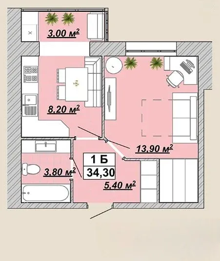 34.3м²