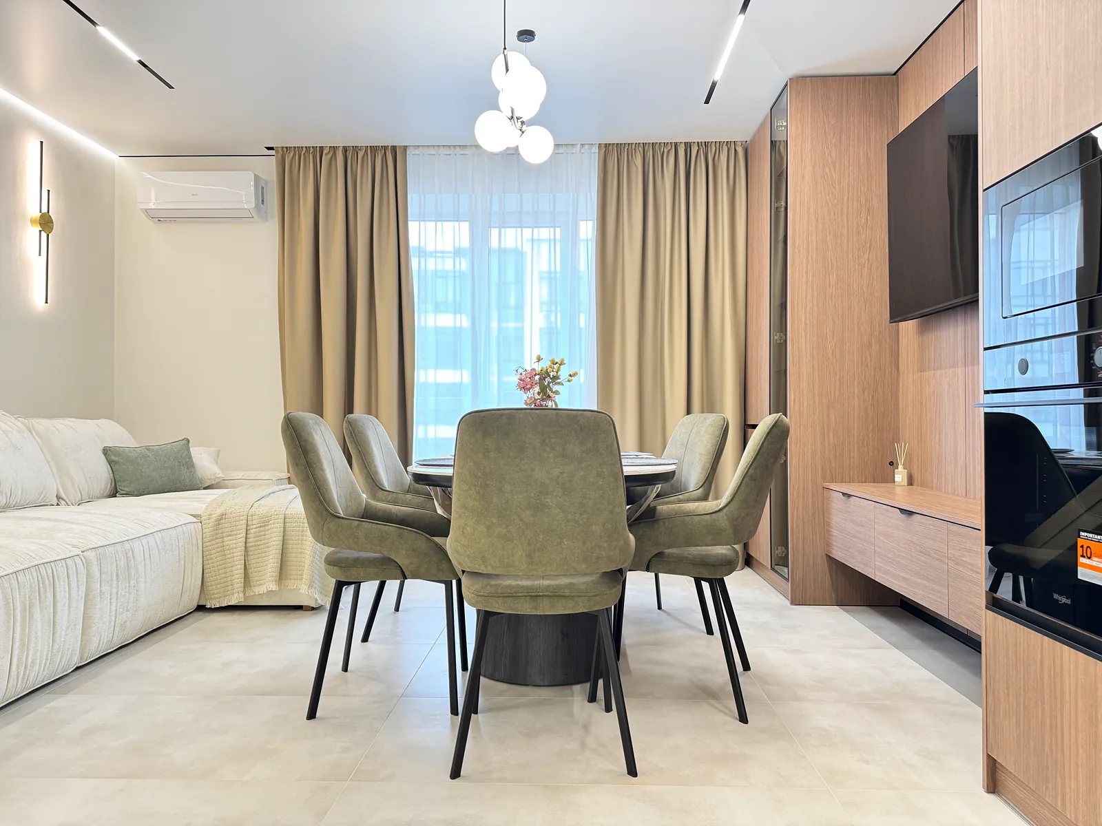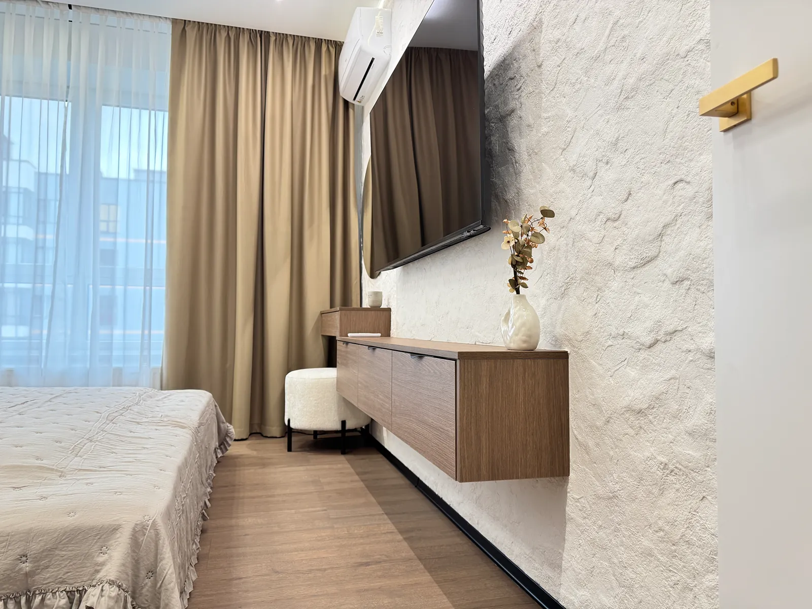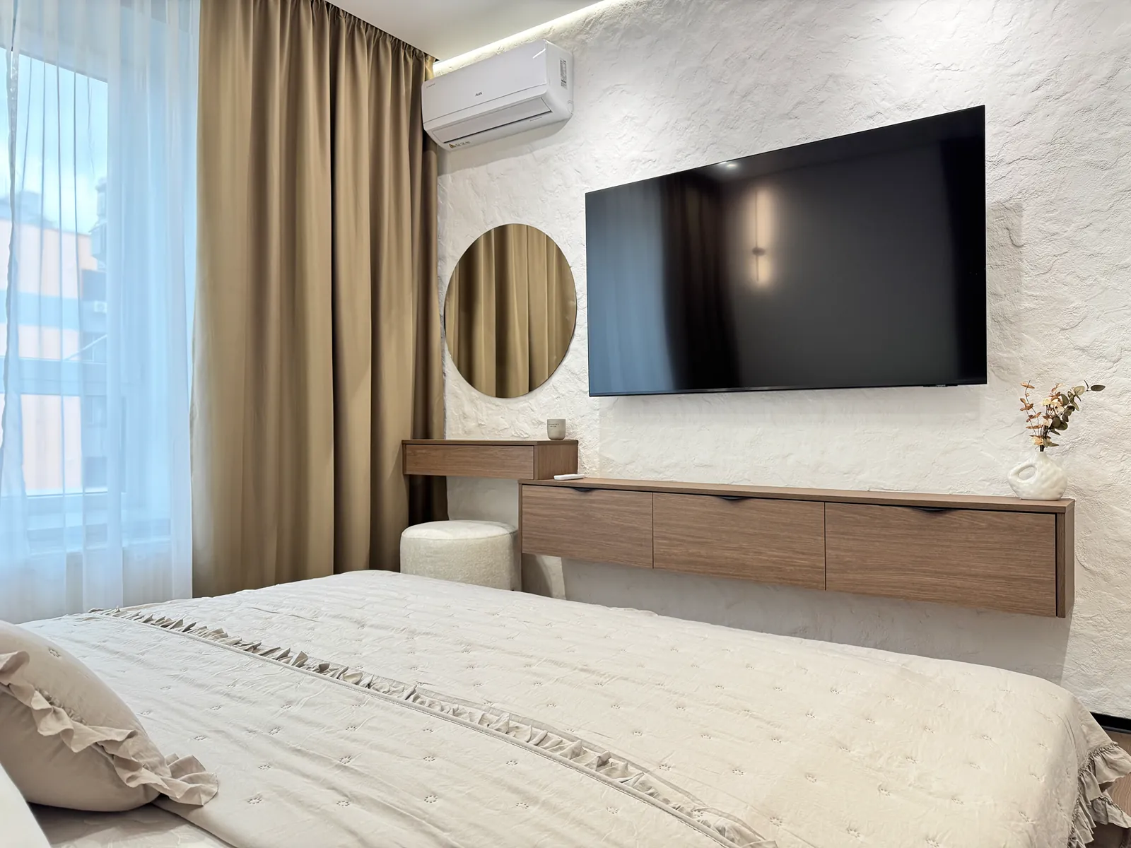 Квартира укомплектована всіма необхідними меблями та технікою: