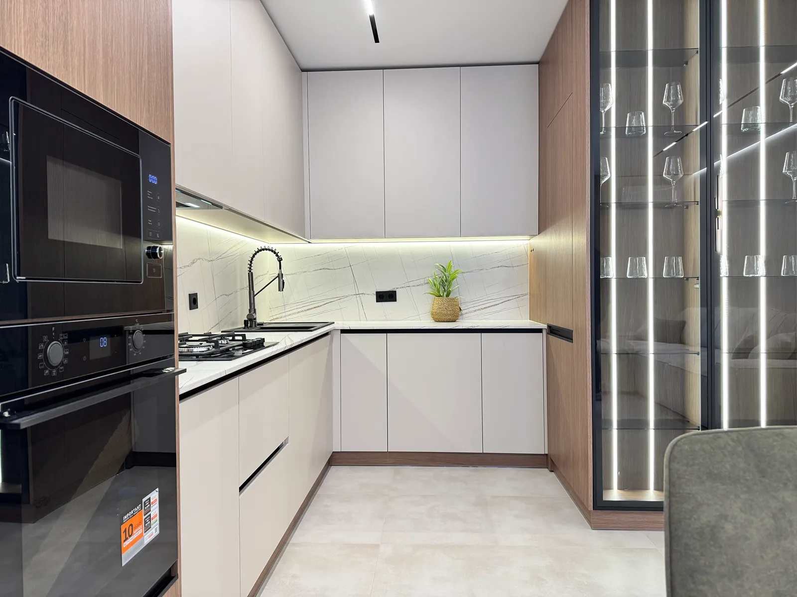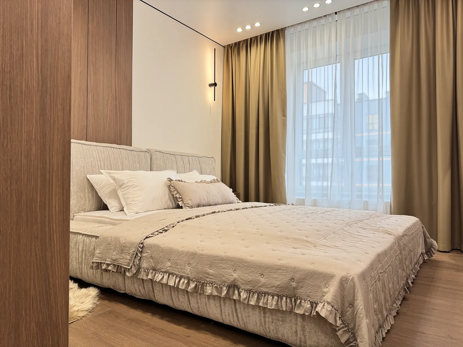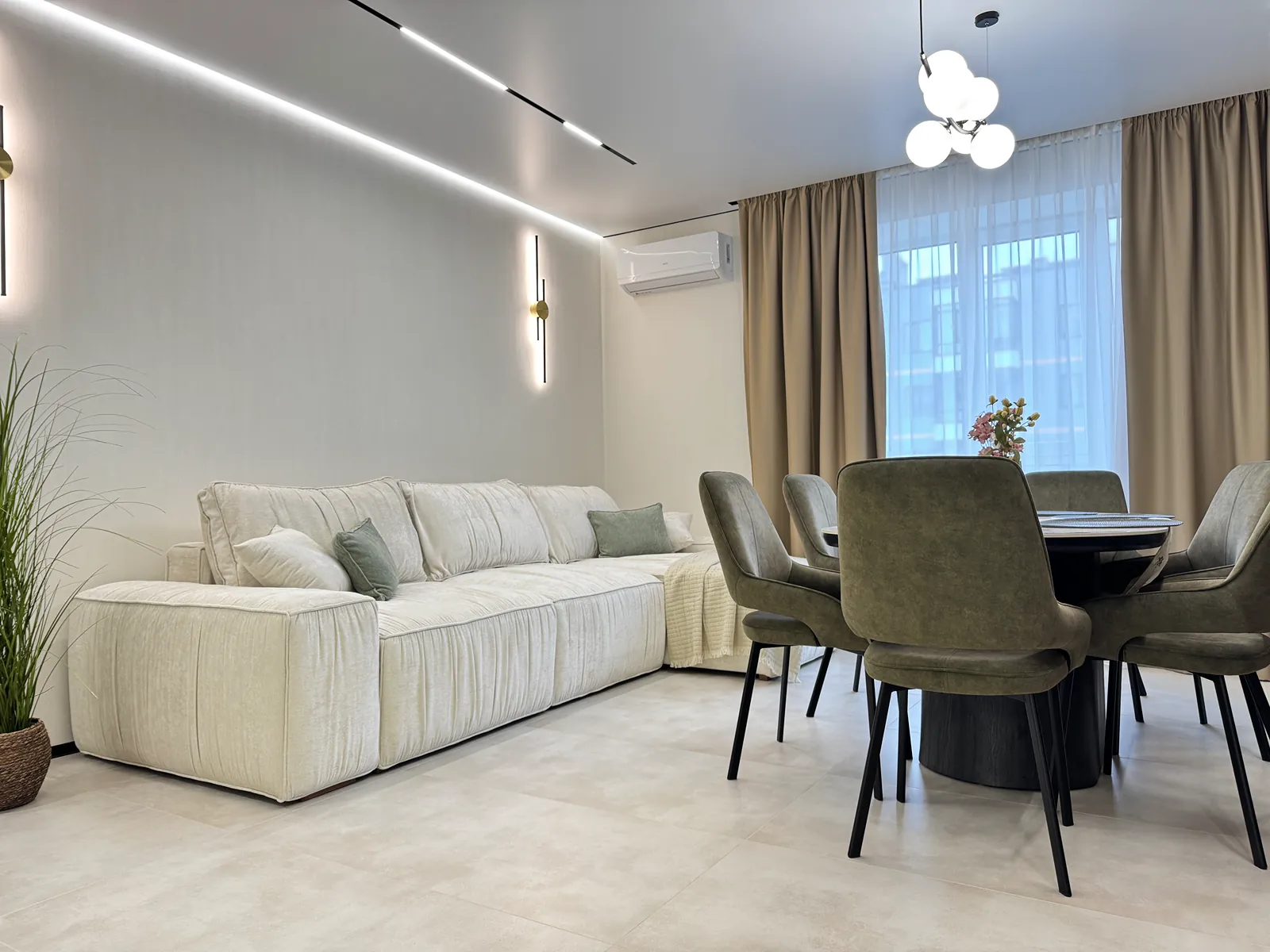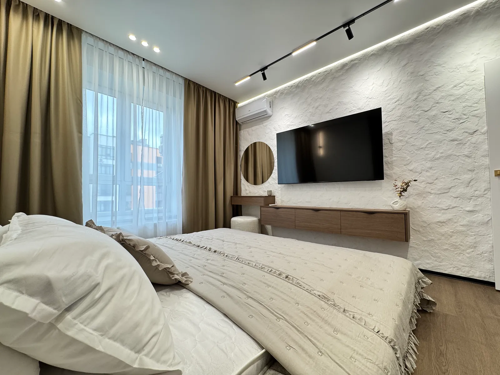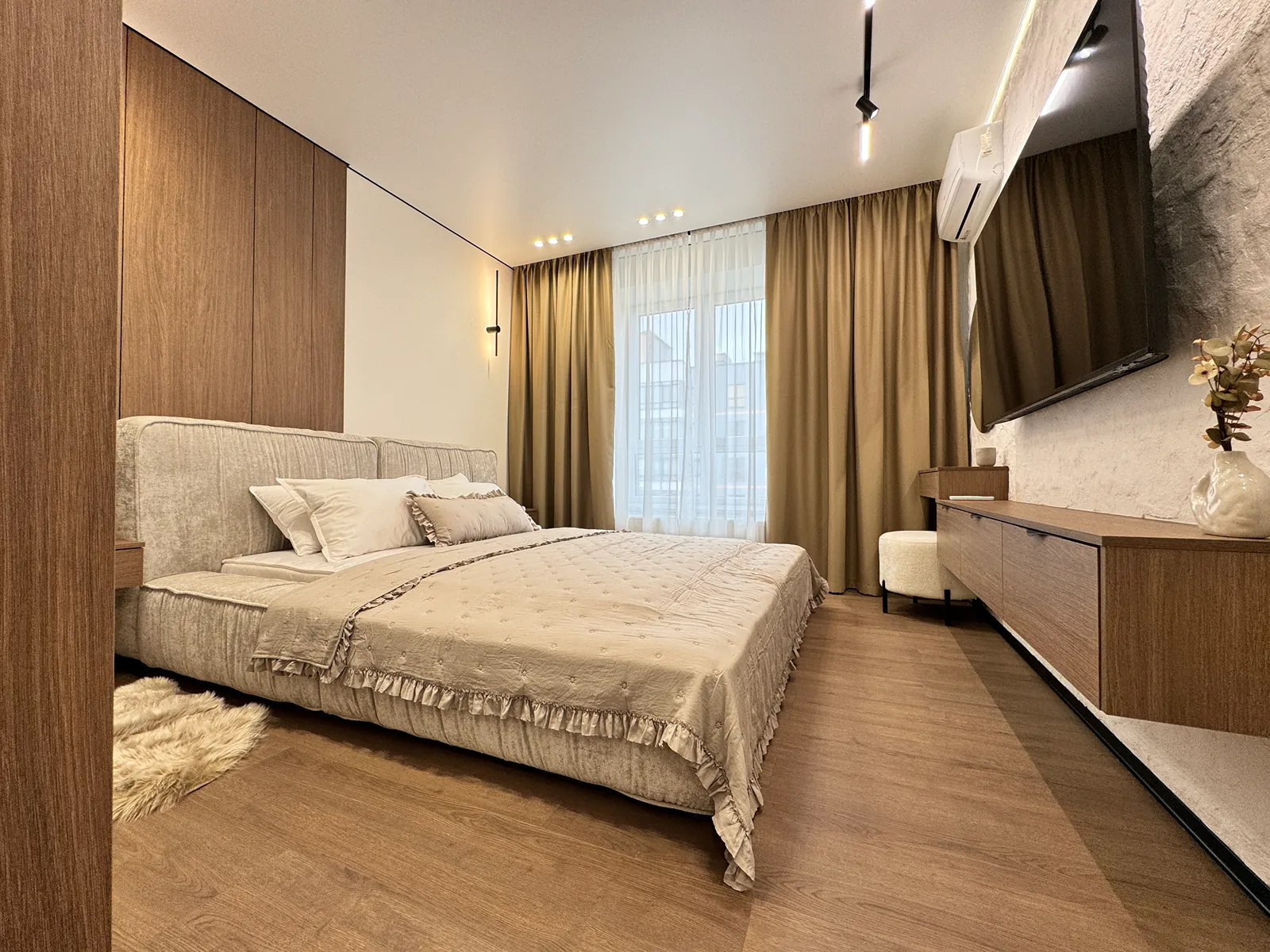 Продається стильна двокімнатна квартира з кухнею-студією та двома окремими кімнатами в центральній частині міста, біля парку Шевченка.