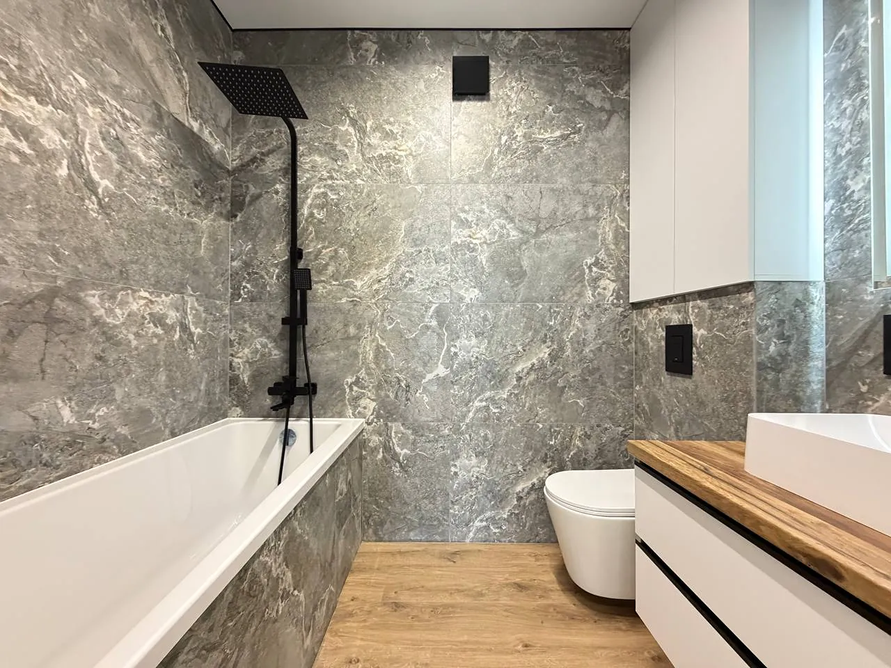 У квартирі встановлено інверторний кондиціонер, підігрів підлоги (усюди, крім житлової кімнати), на підлозі якісний ламінат та плитка.