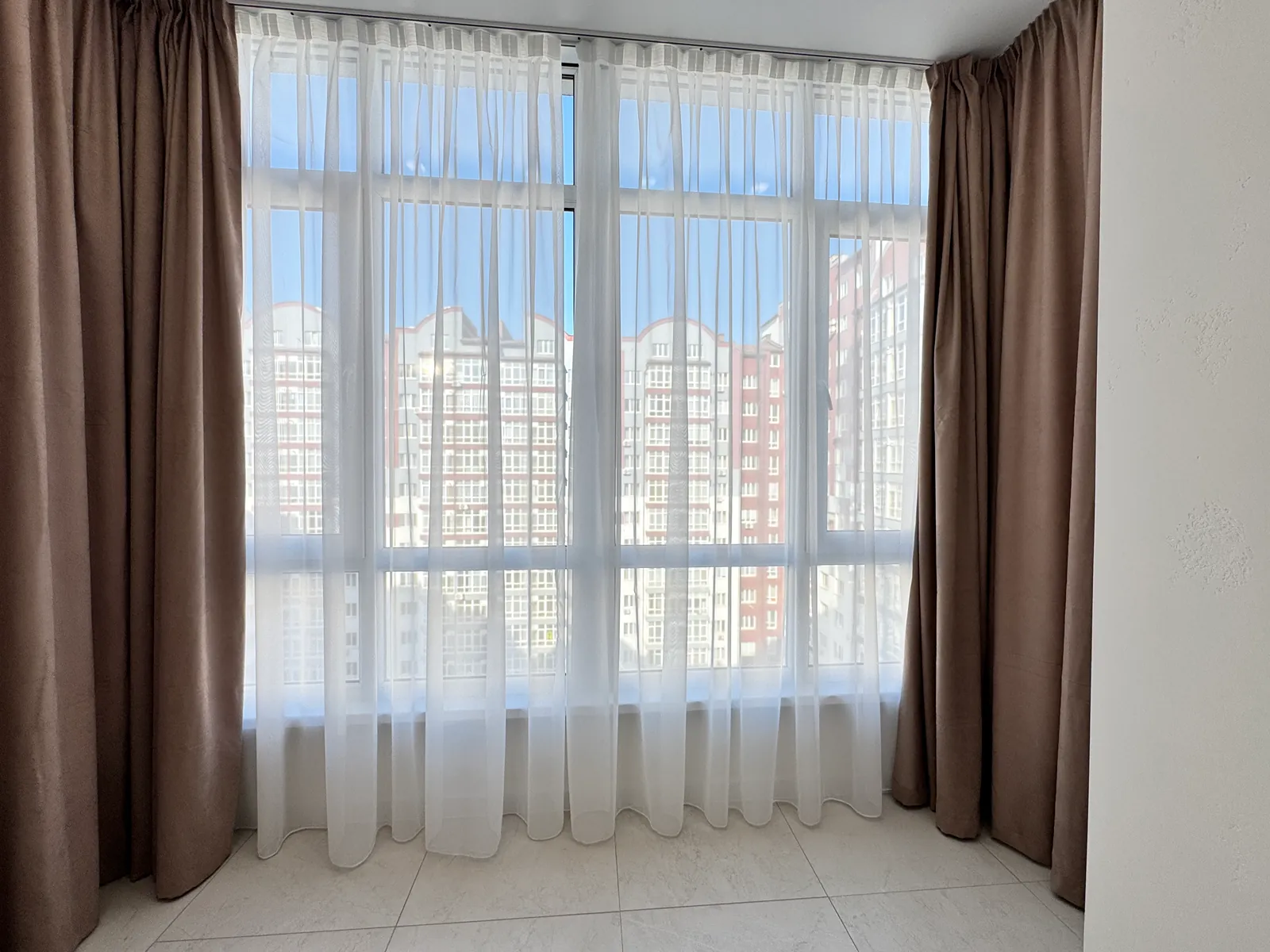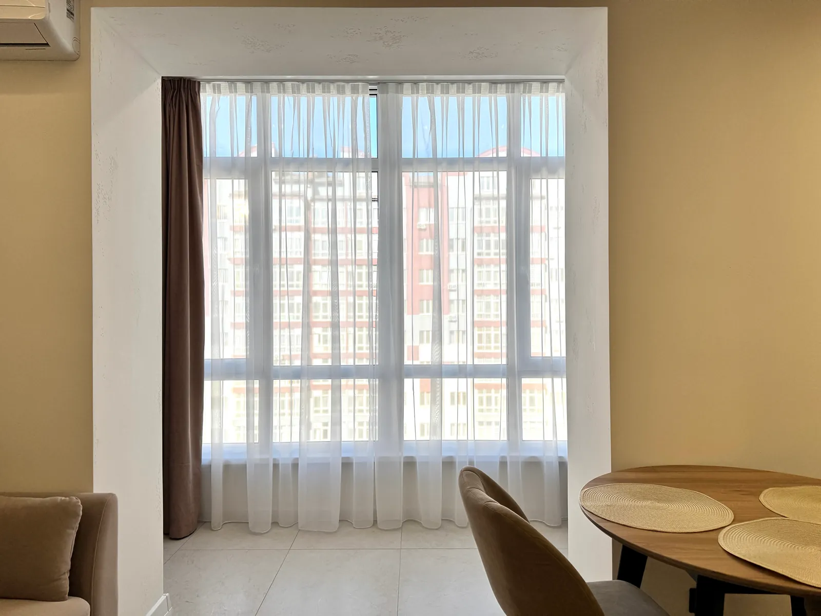 З вікон квартири відкривається краєвид у двір.