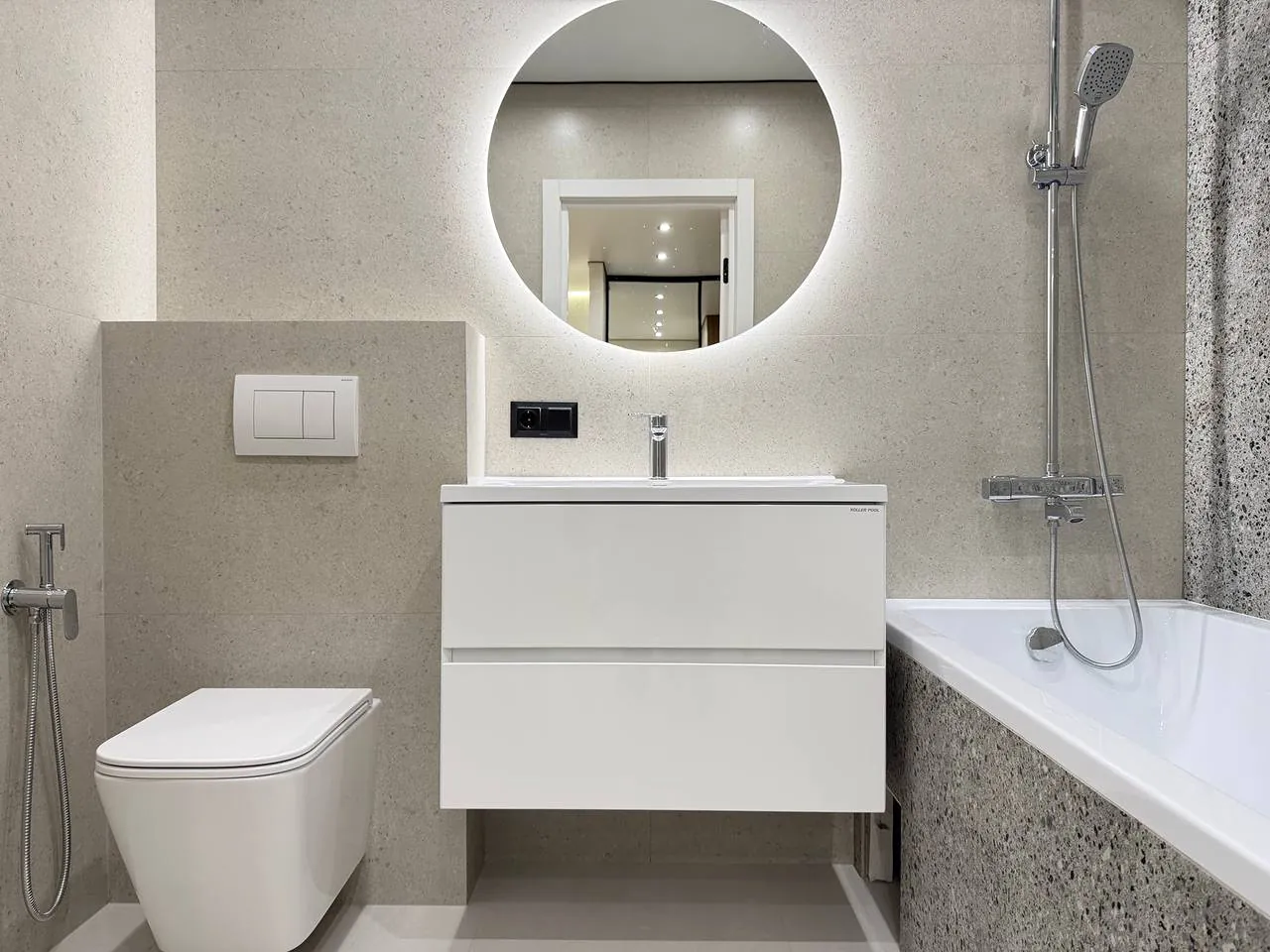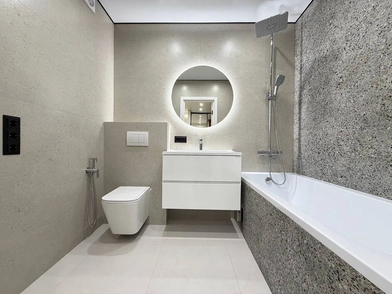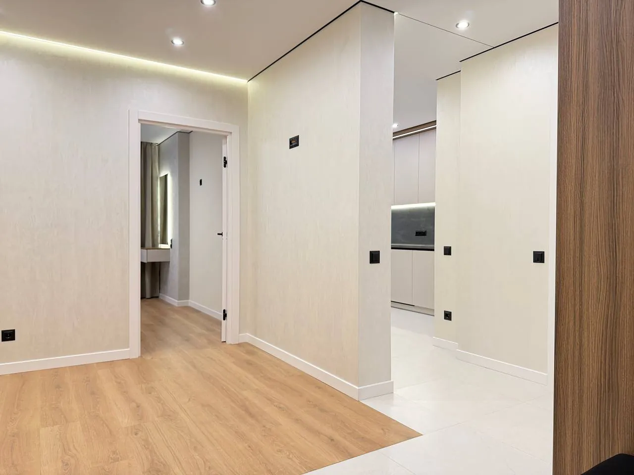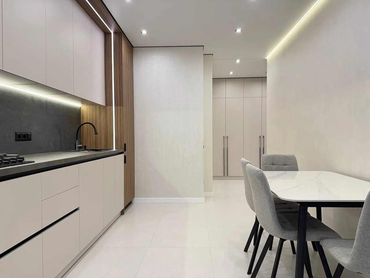 У квартирі відмінне планування: простора кухня з укомплектованою робочою частиною, зона вітальні з диваном , спальня з ліжком, приліжковими тумбами та бʼюті зоною, передпокій з та великий санвузол.