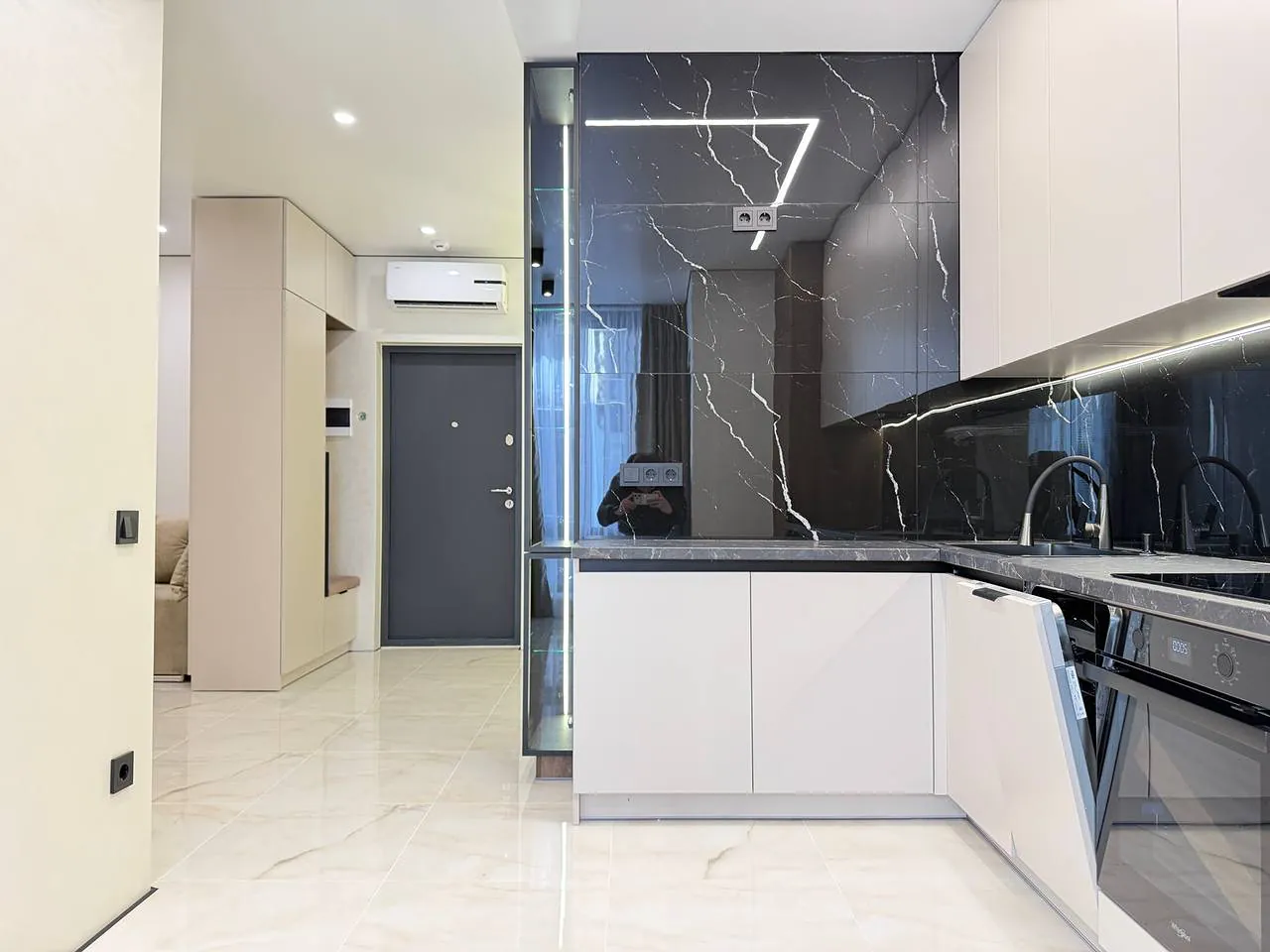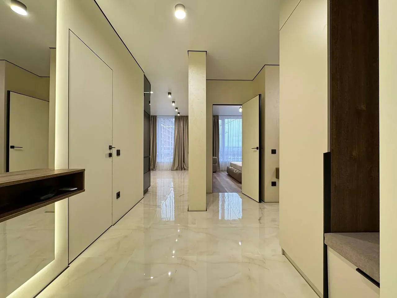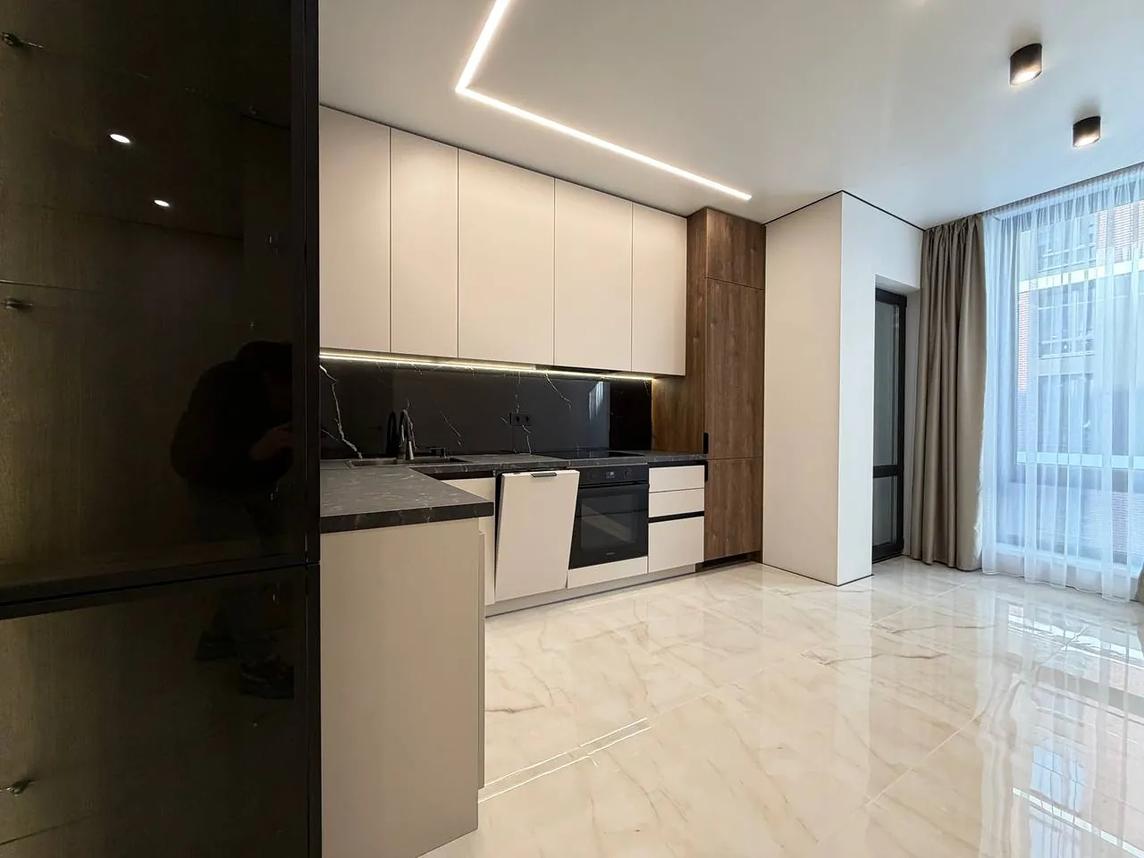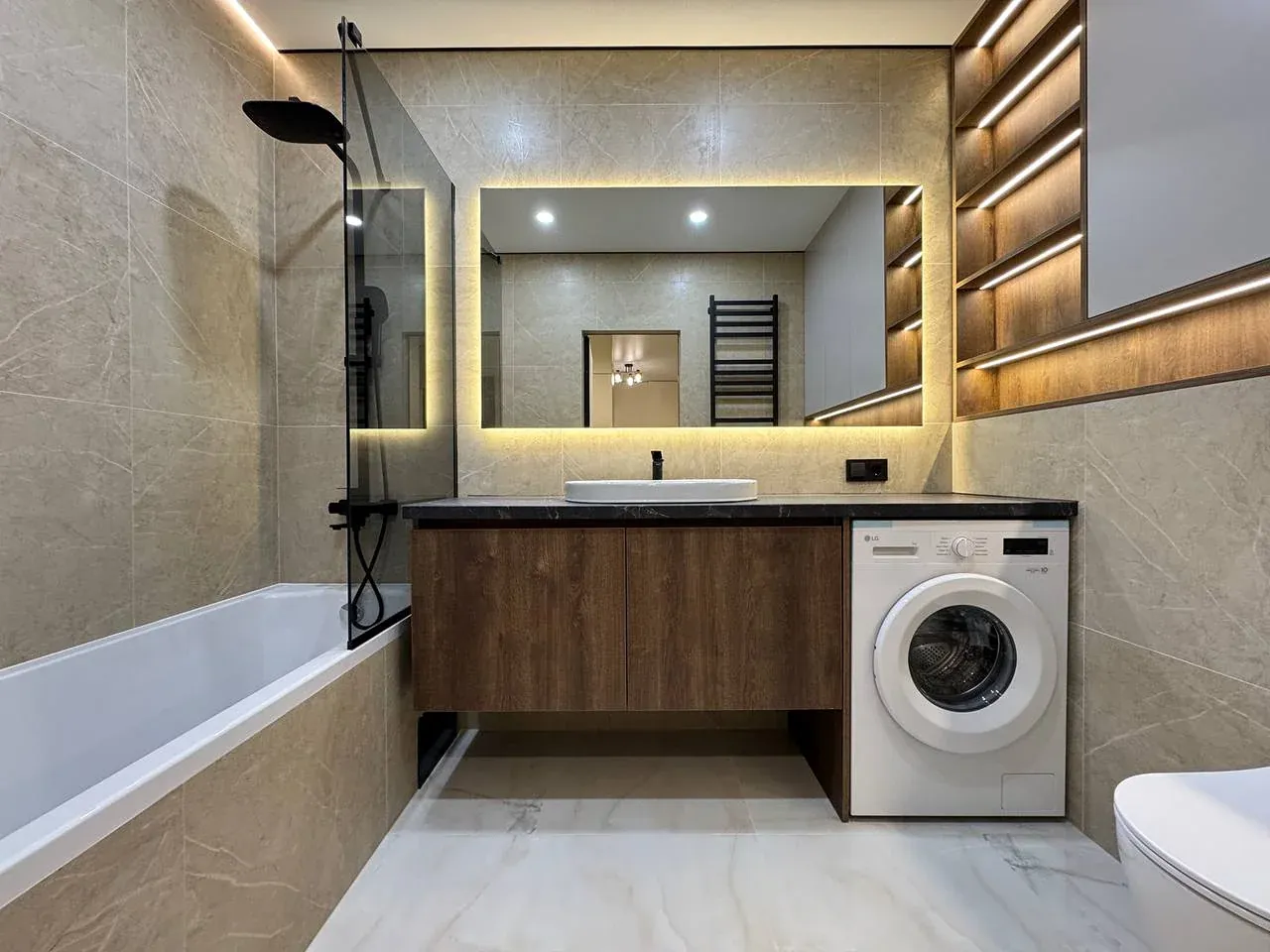 Пропонується до продажу стильна 1.5-кімнатна квартира з дизайнерським ремонтом у ЖК бізнес-класу, що розташований на березі мальовничого міського озера.