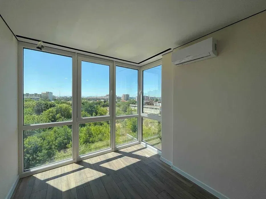 Планування квартири включає: прихожу, простору спальню з панорамними вікнами, зручну кухню, та санвузол. Квартира внутрішня, світла.