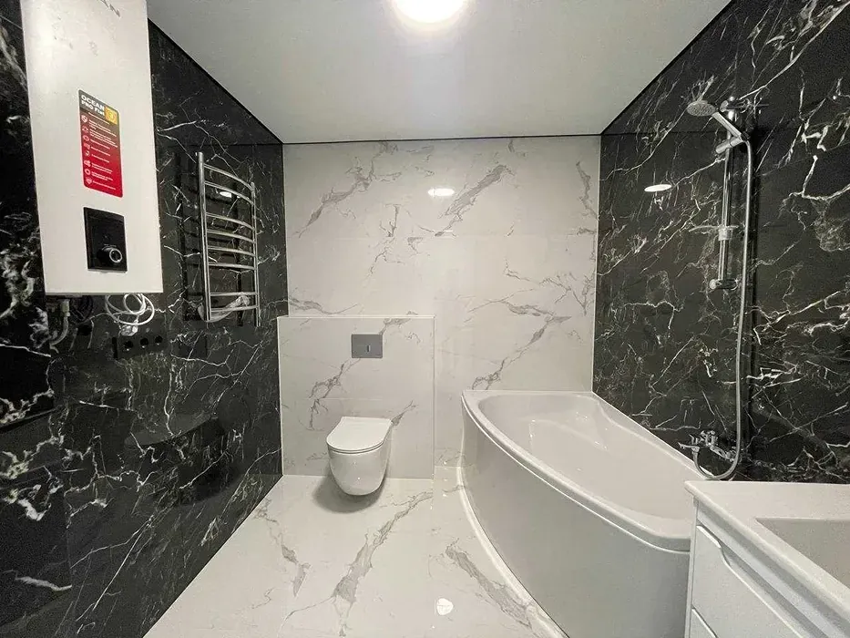 У квартирі встановлений підігрів підлоги в зонах, де плитка. На стінах декоративна штукатурка та миюча фарба.