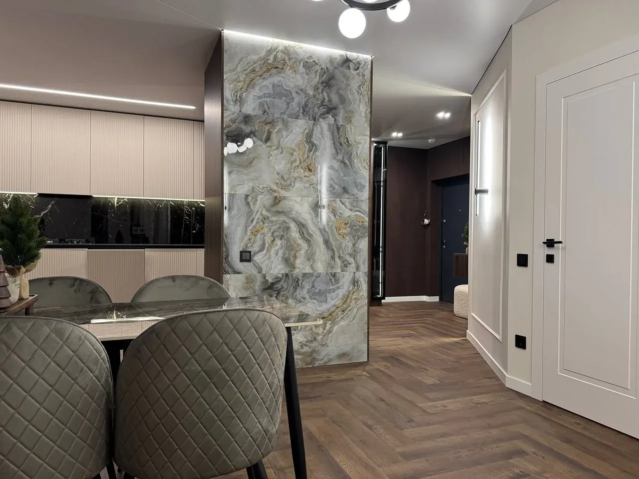 Пропонуємо стильну та комфортну квартиру з сучасним ремонтом у престижному житловому комплексі, повністю укоплектовану. Загальна площа квартири 71.6м2 яка розташована на шостому поверсі.