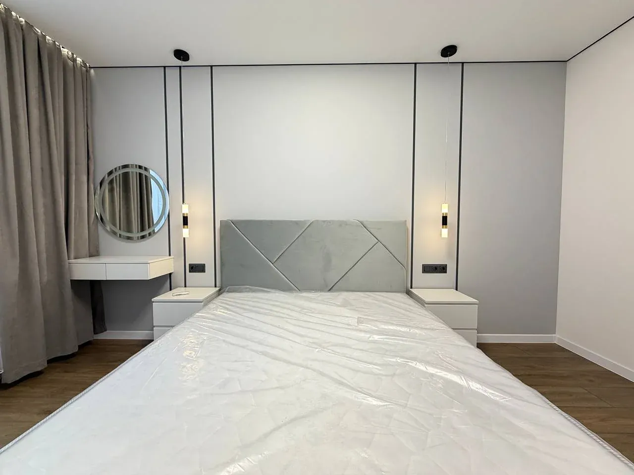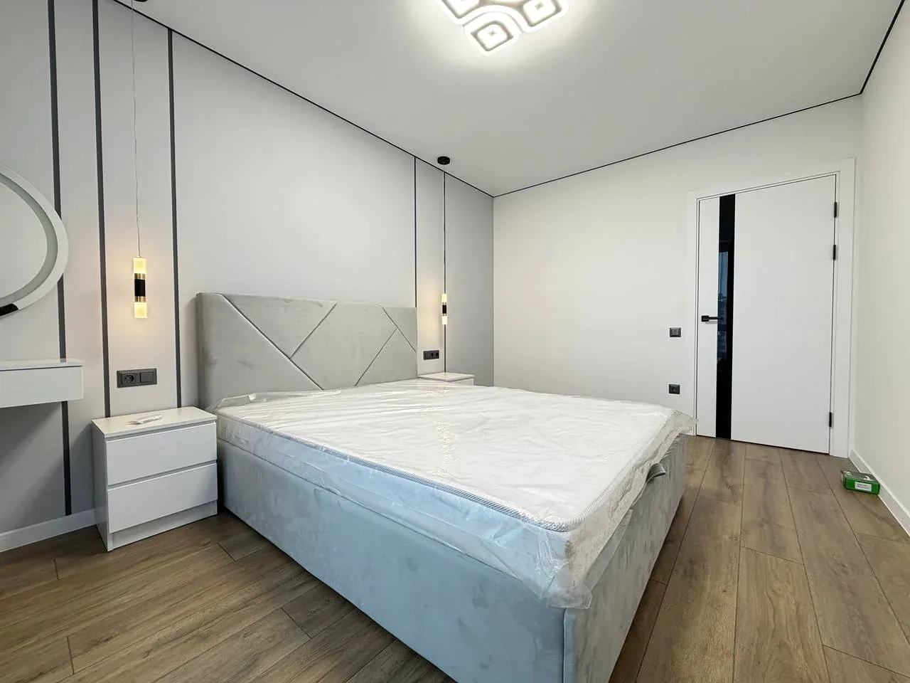 окрема спальня з великим ліжком та бюті зоною.