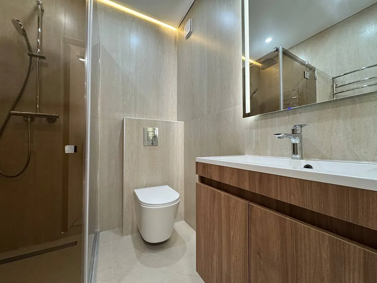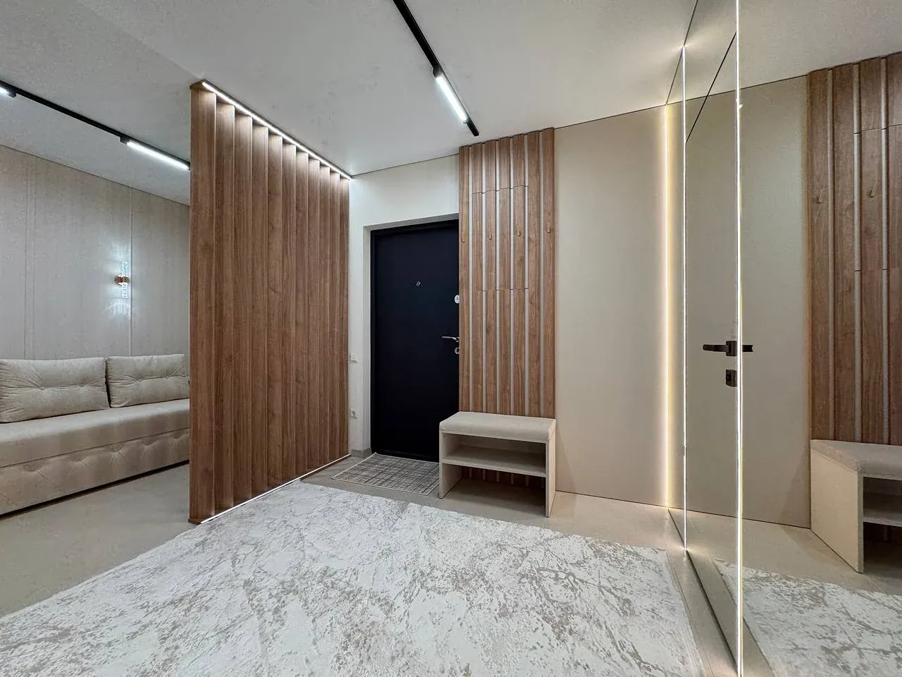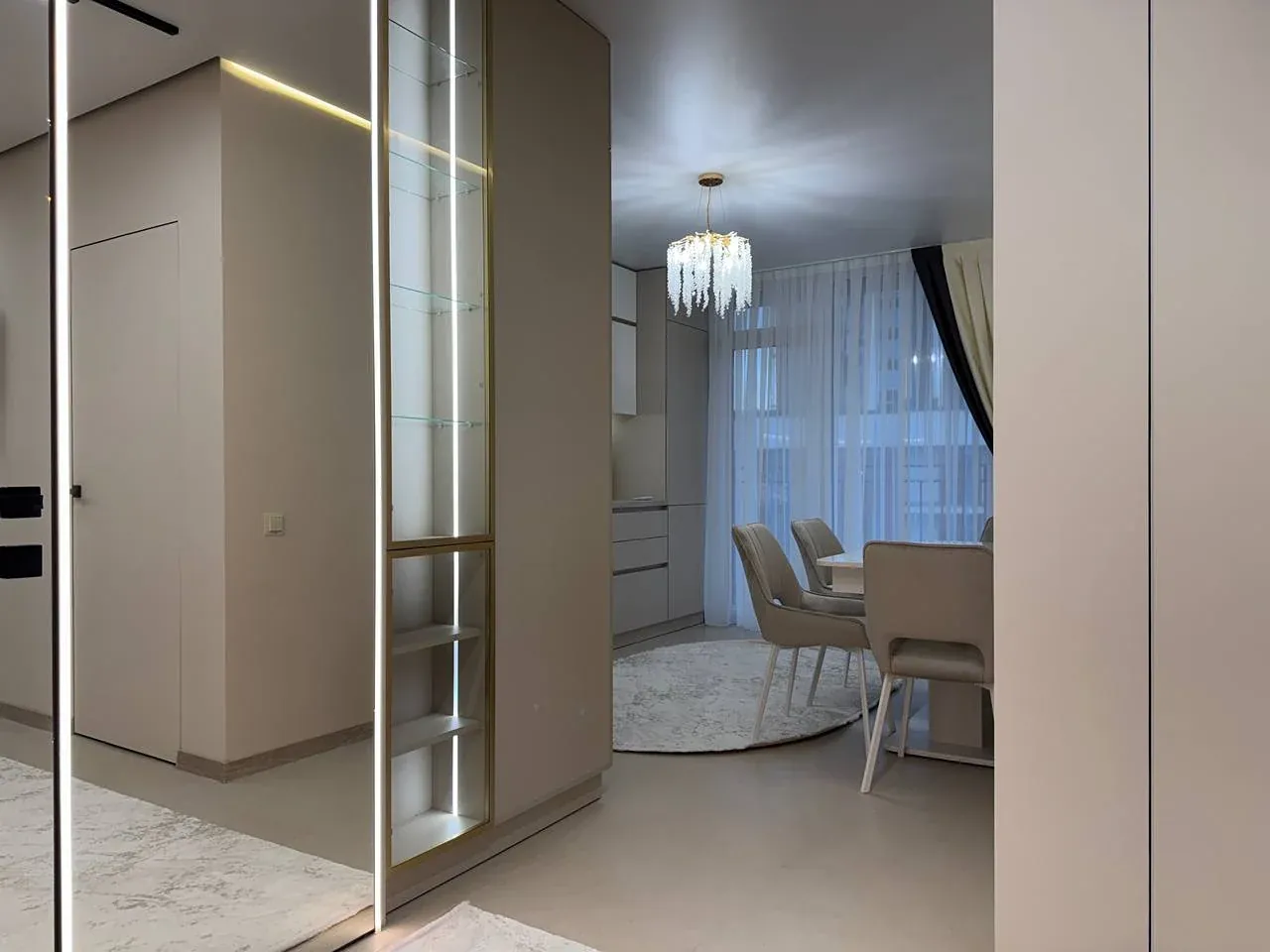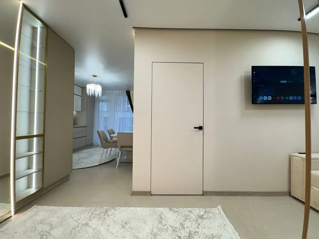 Квартира розташована на видовому одинадцятому поверсі та має функціональне планування площею 41м2, яке включає в себе: прихожу, санвузол, спальню, зону вітальні та кухню з виходом на власний балкон. В квартирі зроблений дизайнерський ремонт з використанням дорогих та якісних матеріалів. Квартира повністю укомплектована всією необхідною технікою та меблями.