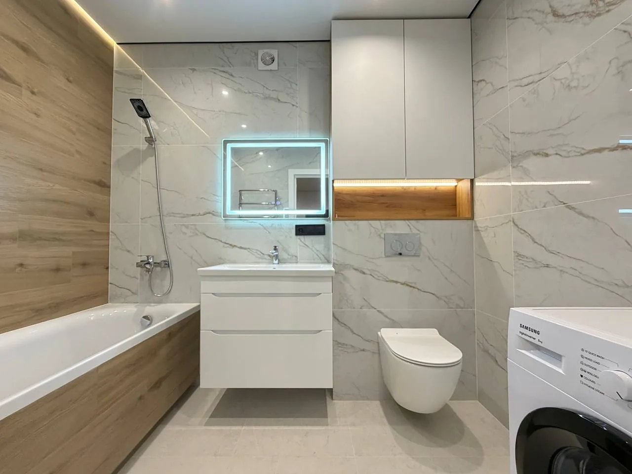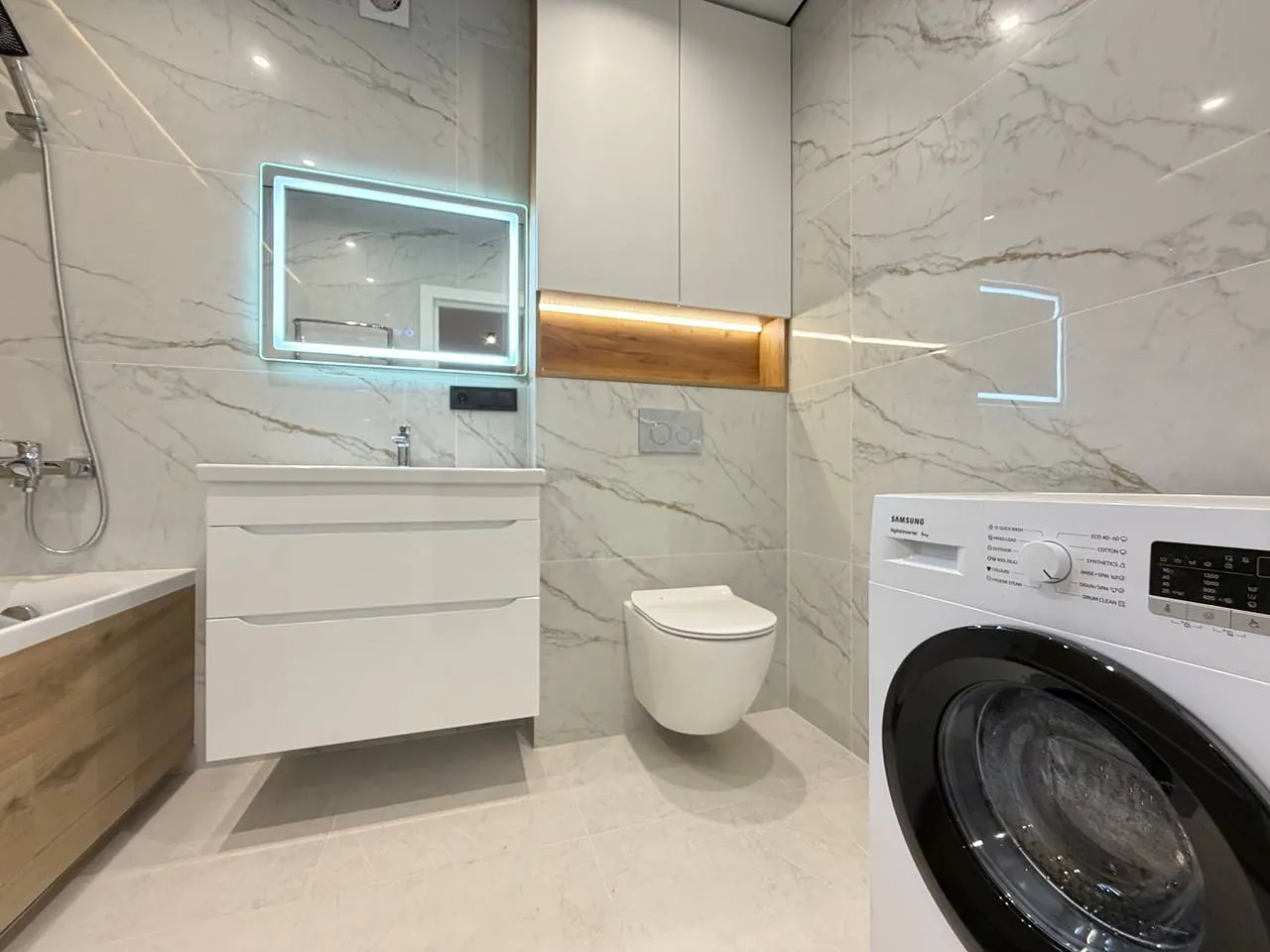 Квартира розташована в центрі міста, у сучасному житловому комплексі з розвиненою інфраструктурою.