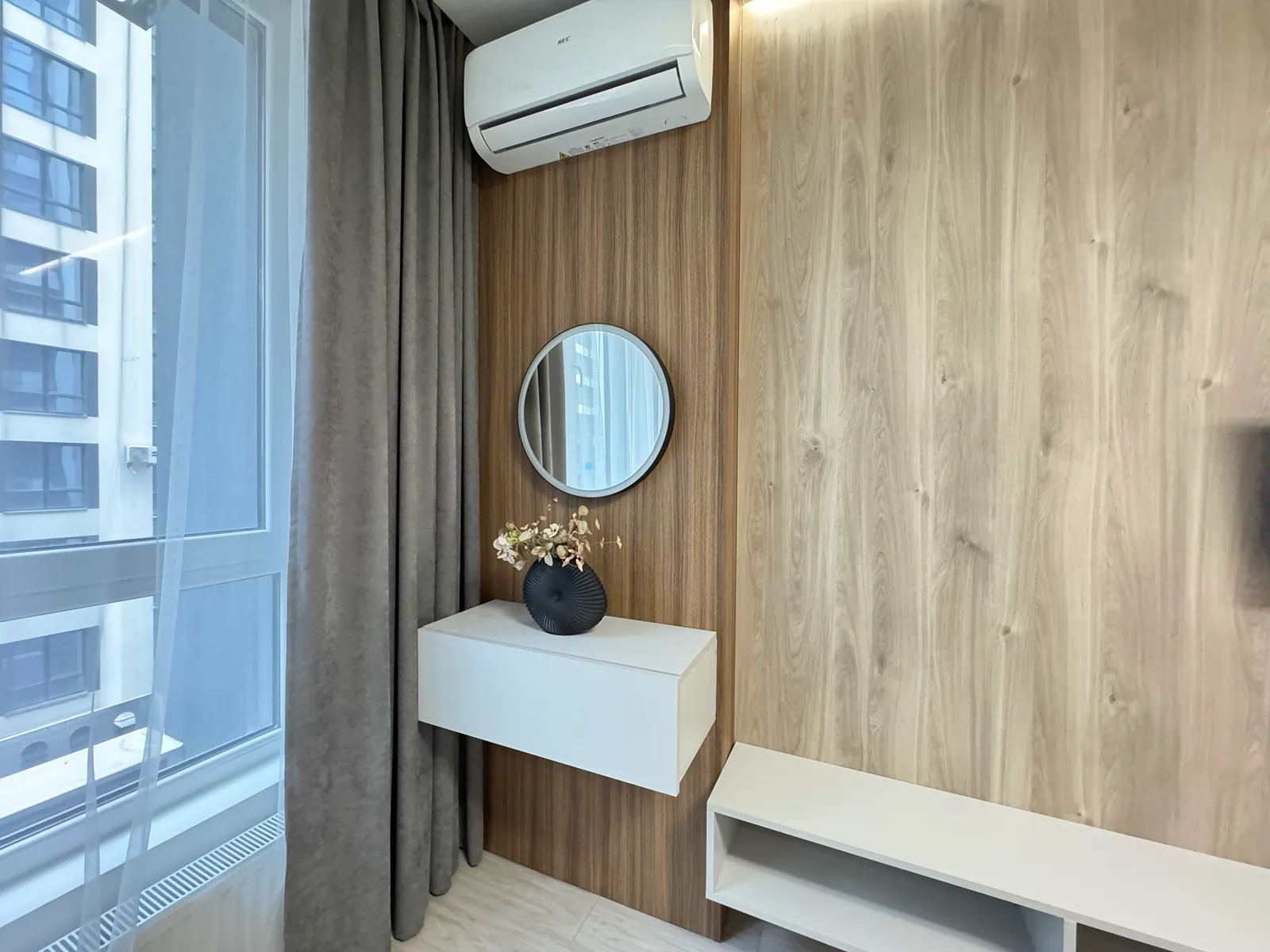 Помешкання розташоване в уже зданій секції: підключені всі комунікації, працює ліфт. Виконано якісний ремонт із використанням дорогих матеріалів за дизайнерським проєктом. Передбачено підігрів підлоги в коридорі, кухні та санвузлі. Квартира повністю укомплектована кухонними меблями та необхідною технікою. Облаштована стильна ванна кімната з усією сантехнікою. У кухонній зоні також є місце для відпочинку з диваном.