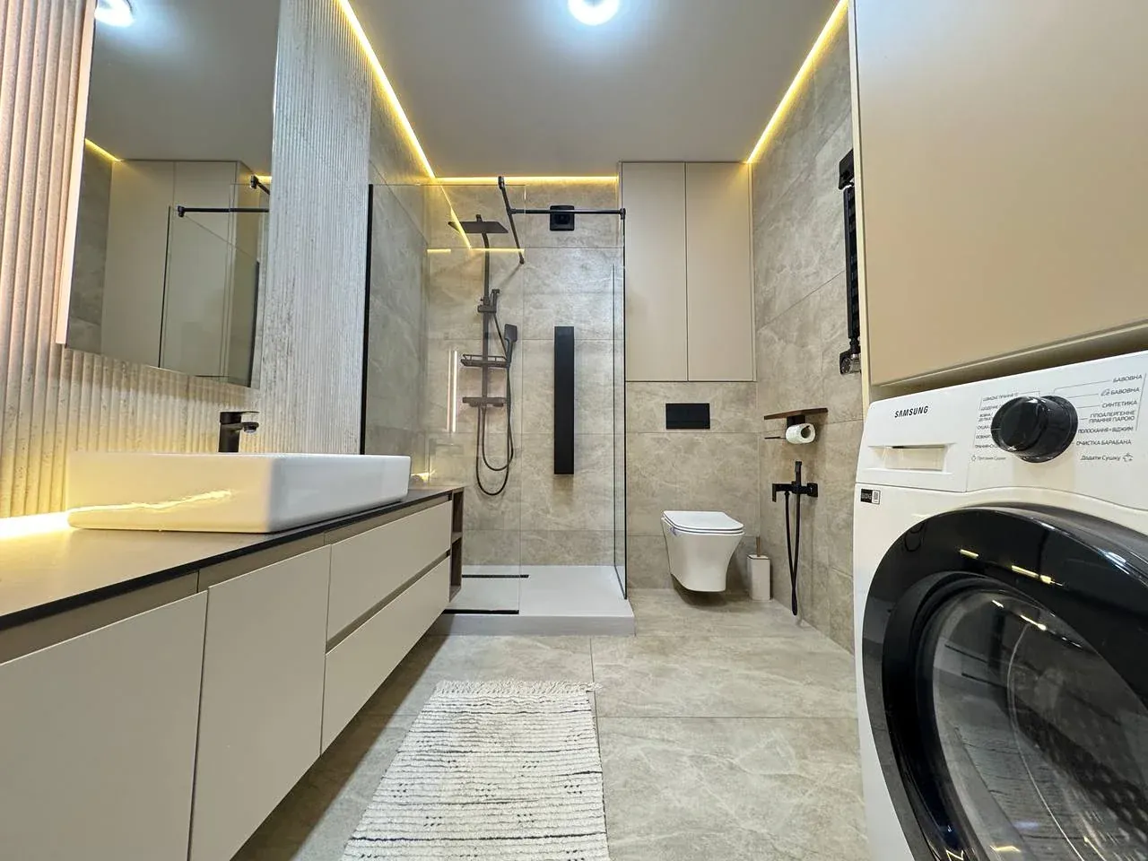 В квартирі зроблений ремонт в сучасному стилі з якісних матеріалів, є вся необхідна техніка та меблі для комфортного проживання, продумане планування включає в себе: