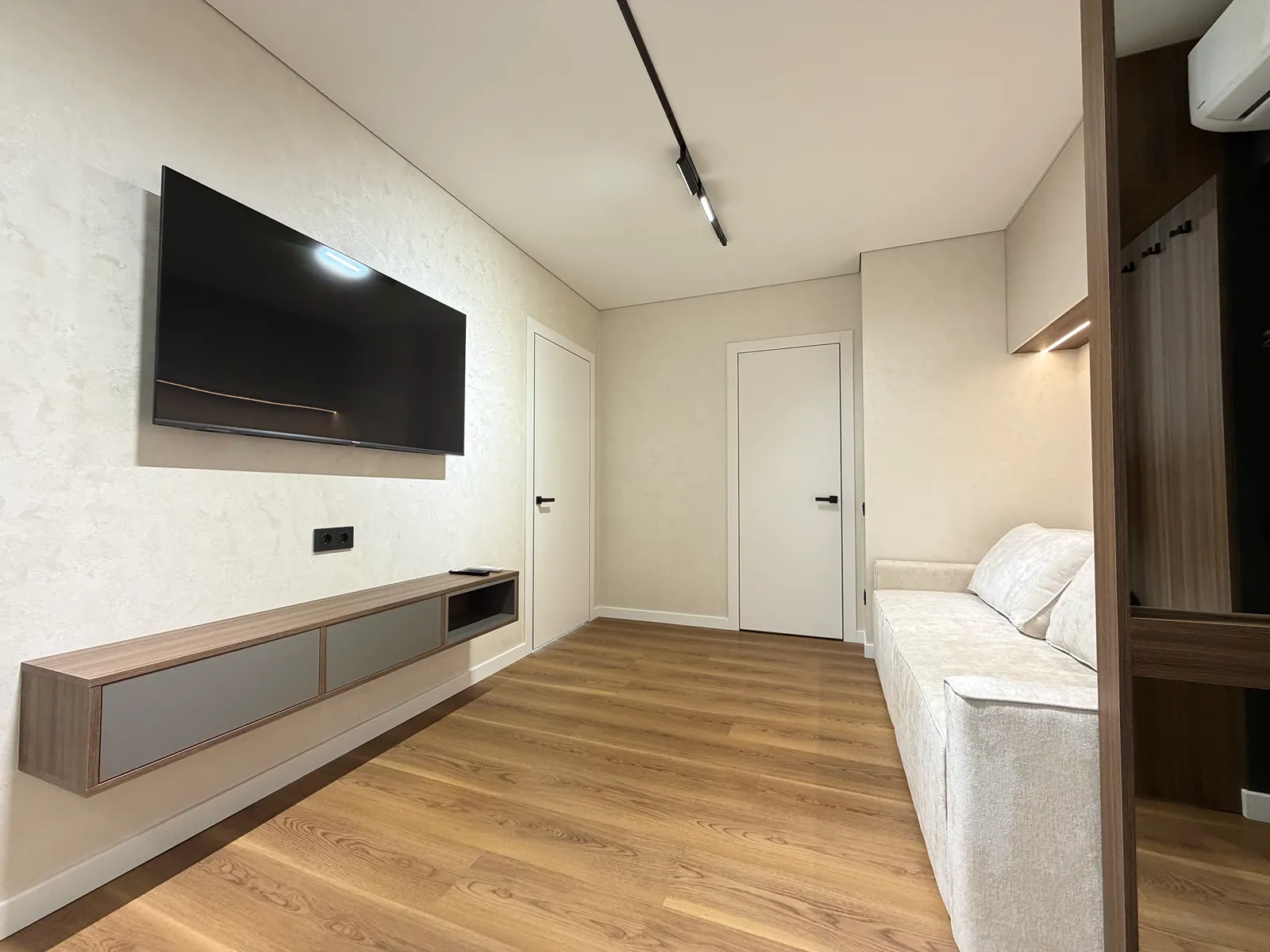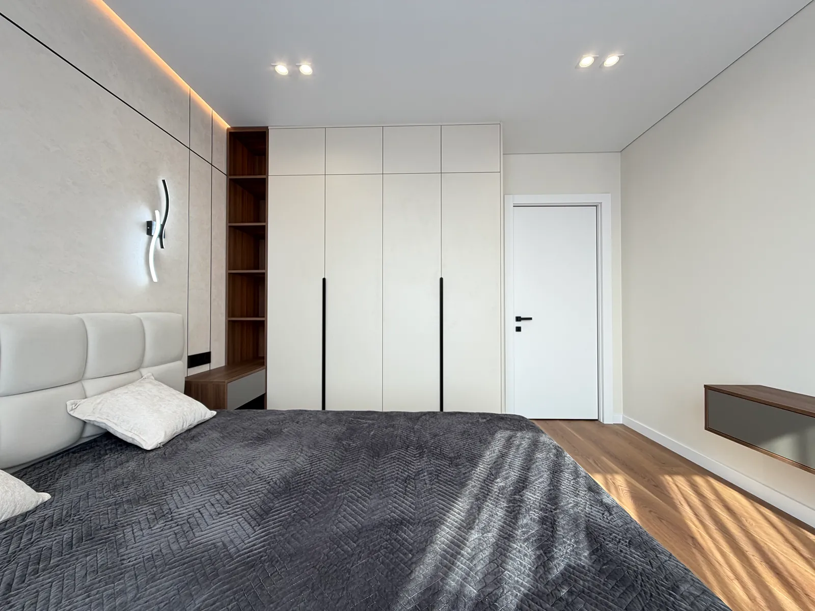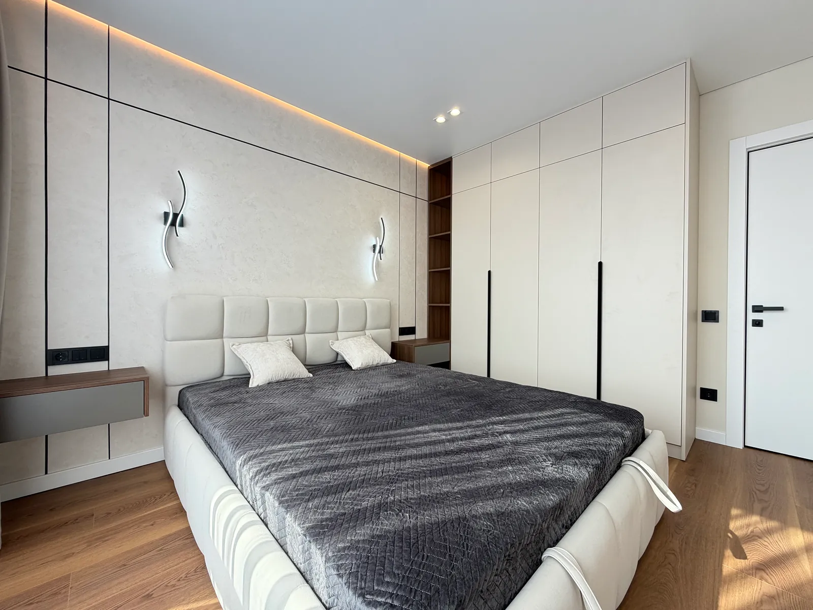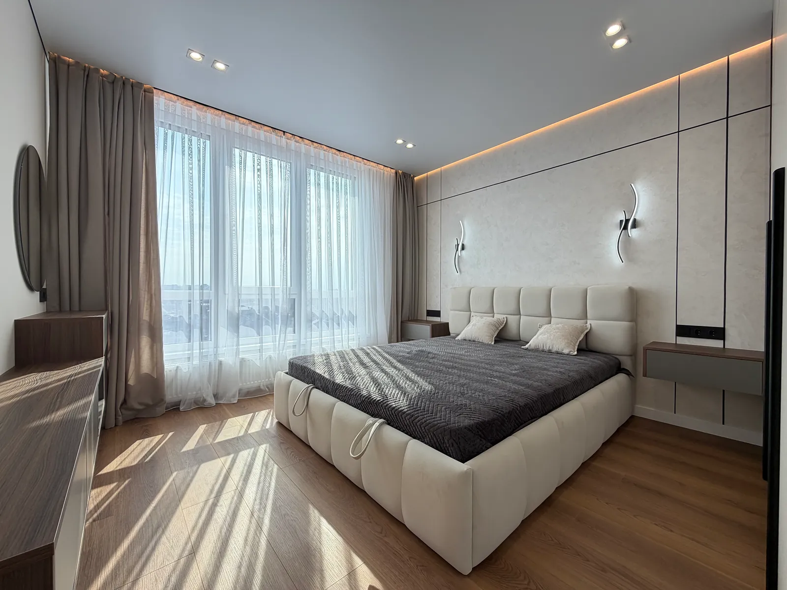 У спальні є ліжко, приліжкові тумби, шафа-купе, бʼюті зона та місце під телевізор. Друга кімната вільного призначення, в якій є місце під диван та бʼюті зону.