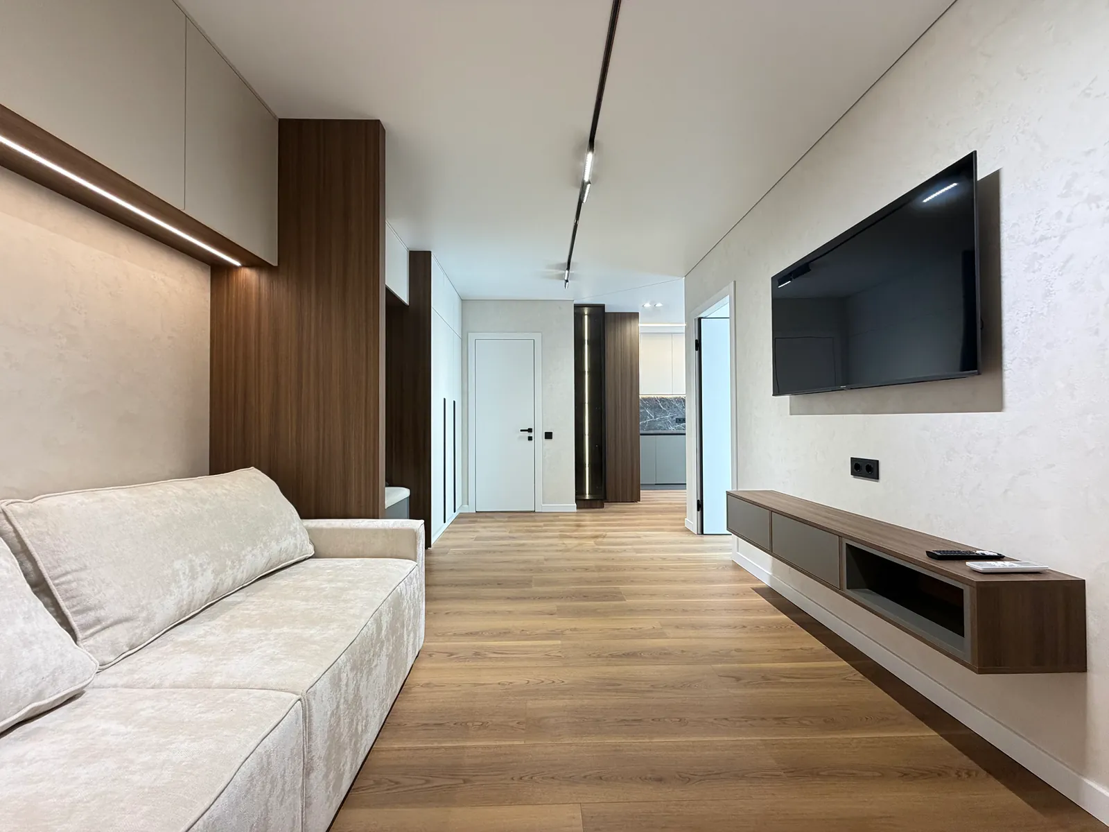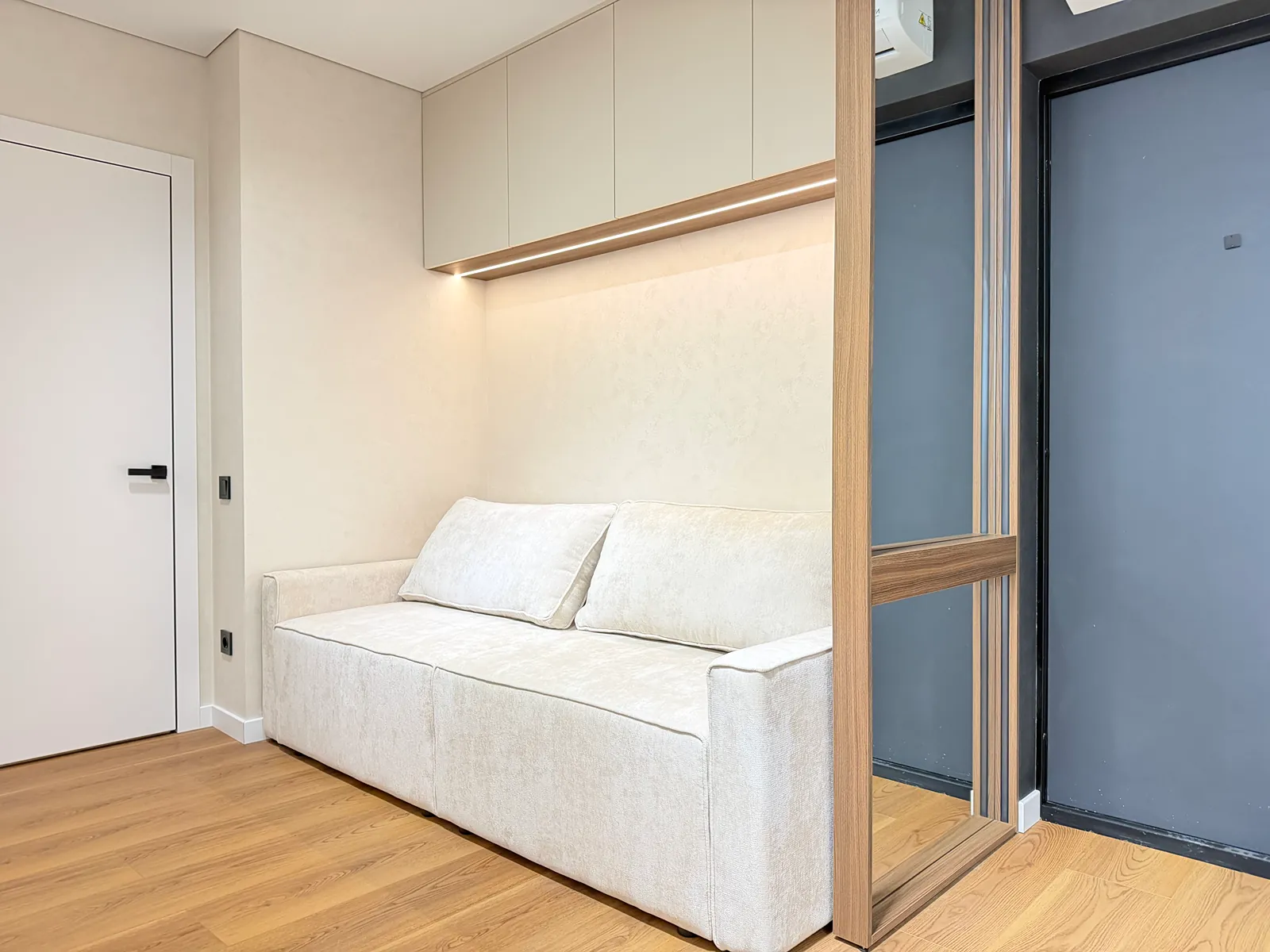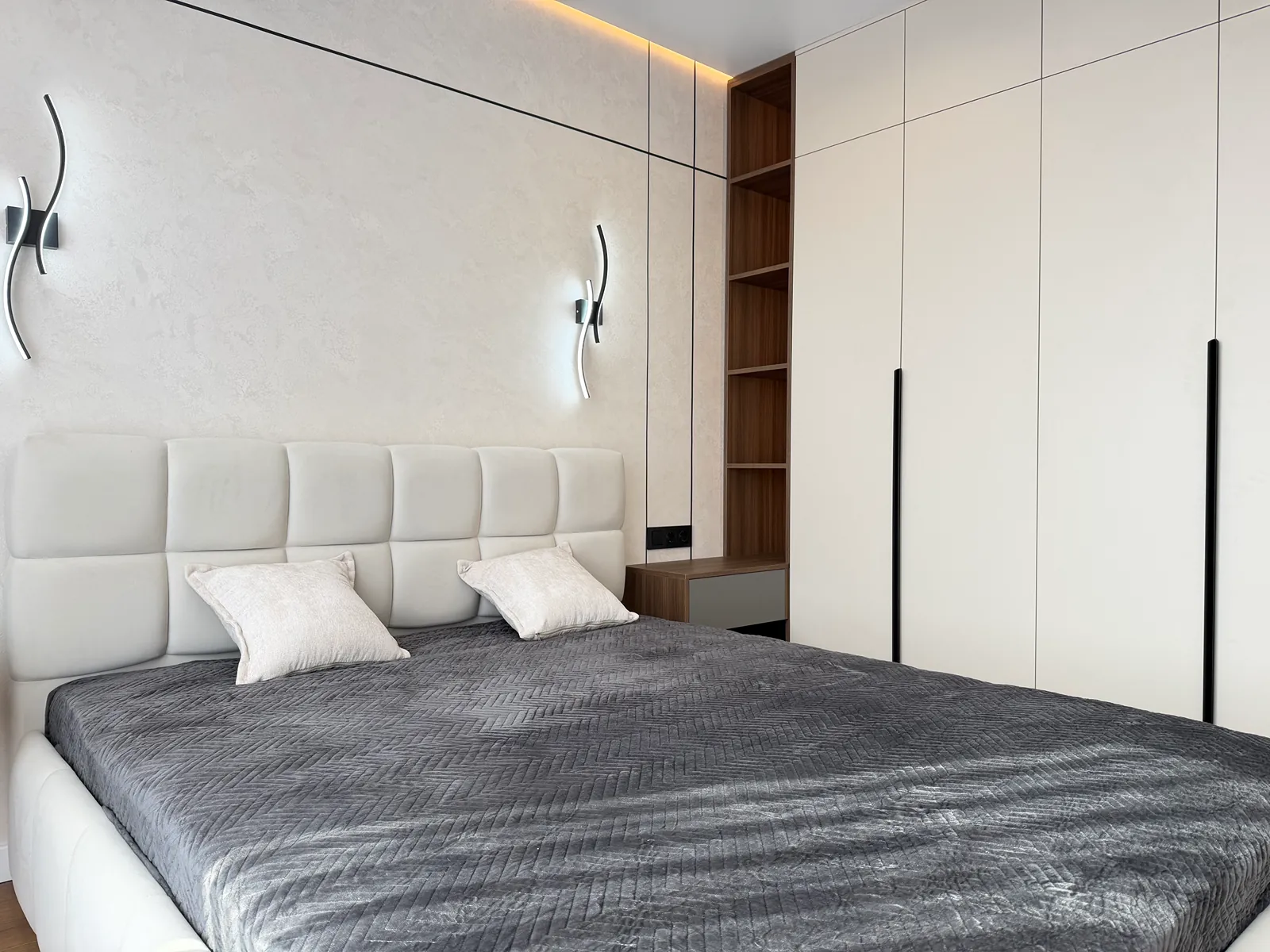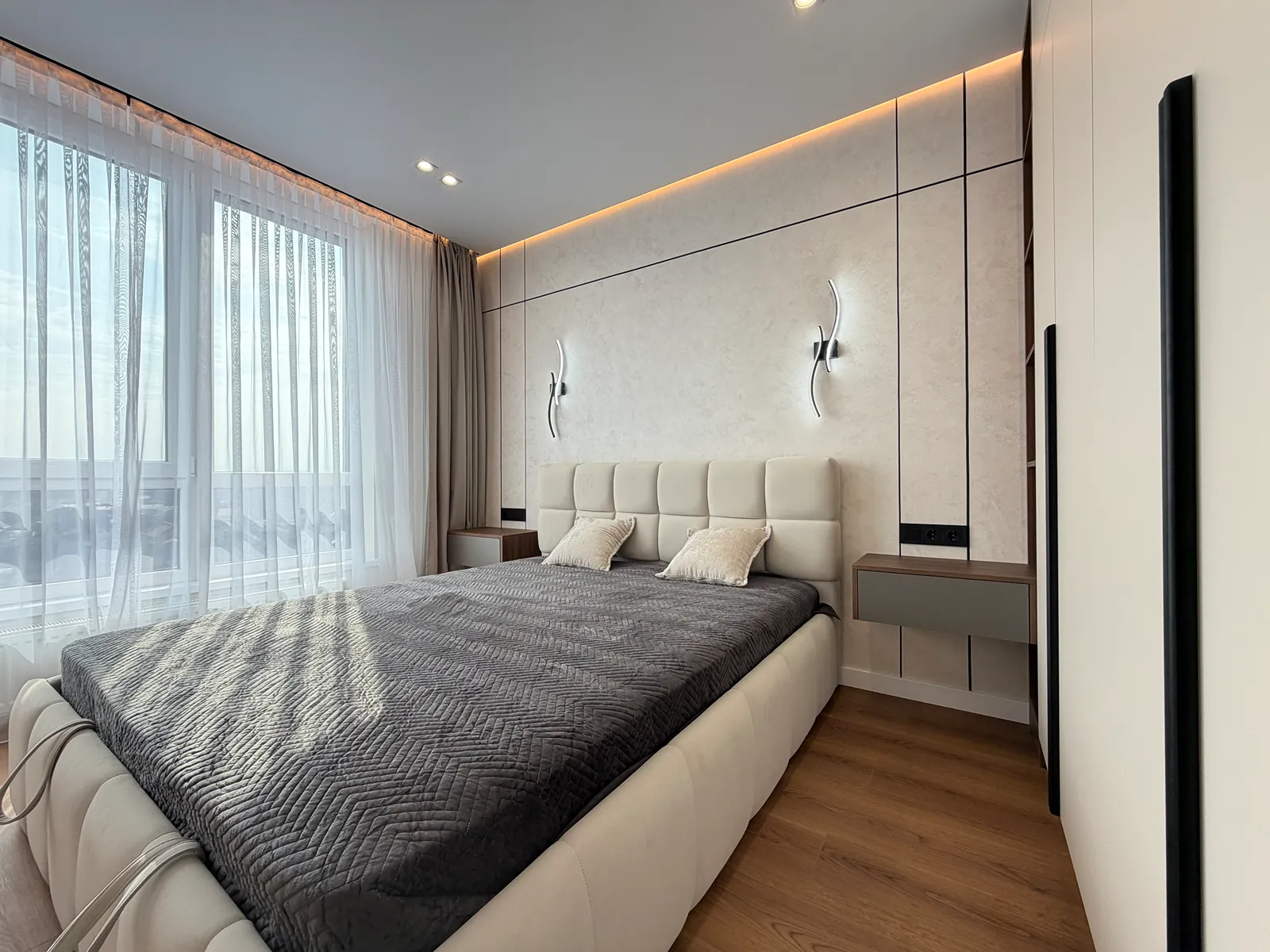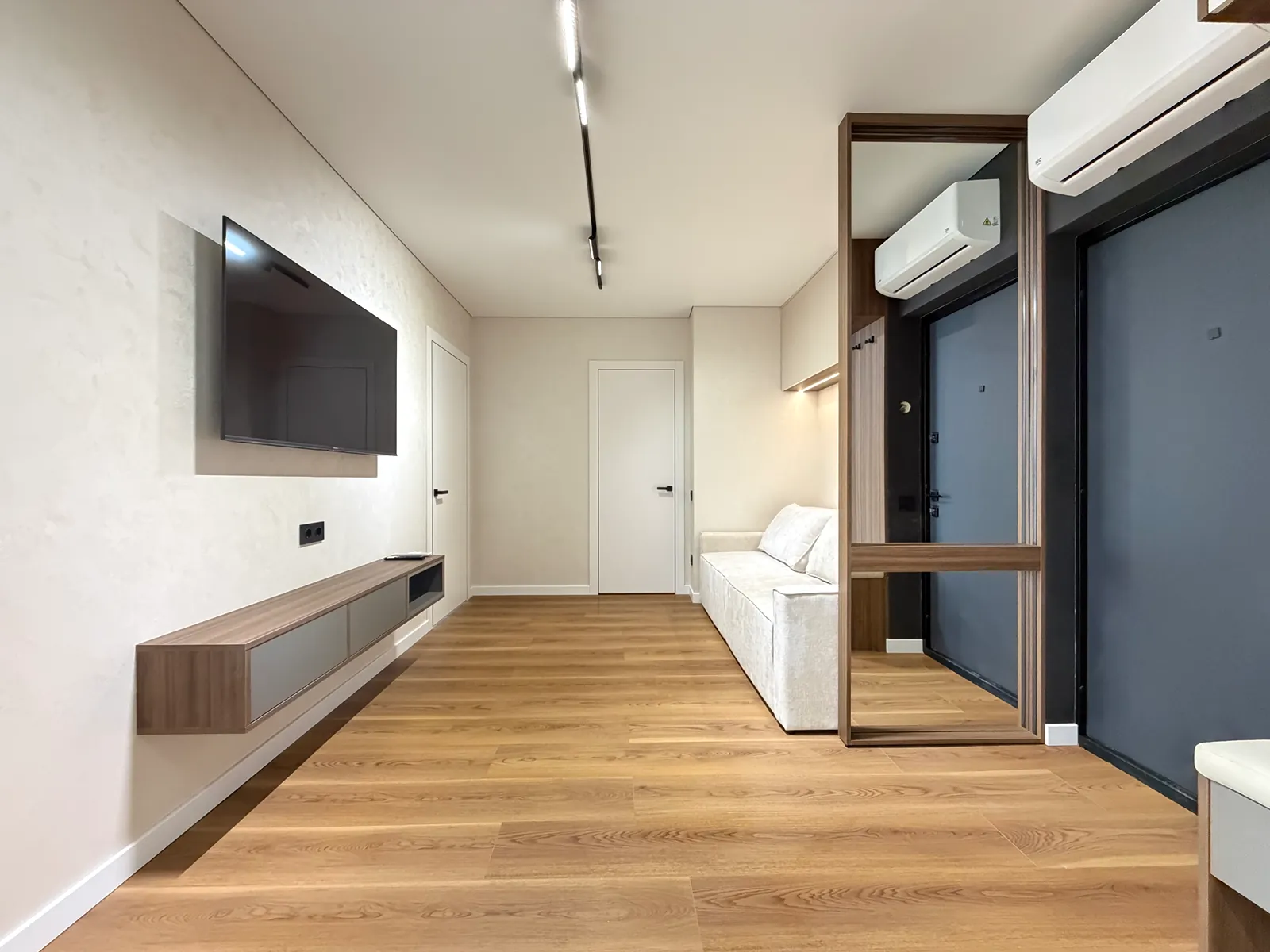 У спальні є ліжко, приліжкові тумби, шафа-купе, бʼюті зона та місце під телевізор. Друга кімната вільного призначення, в якій є місце під диван та бʼюті зону.