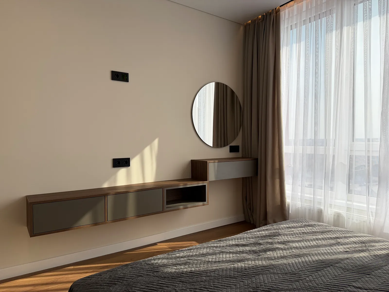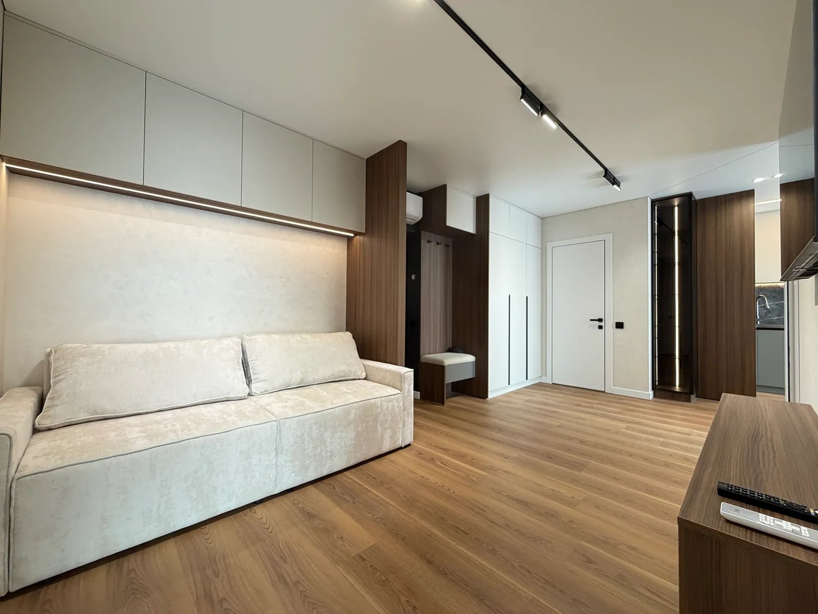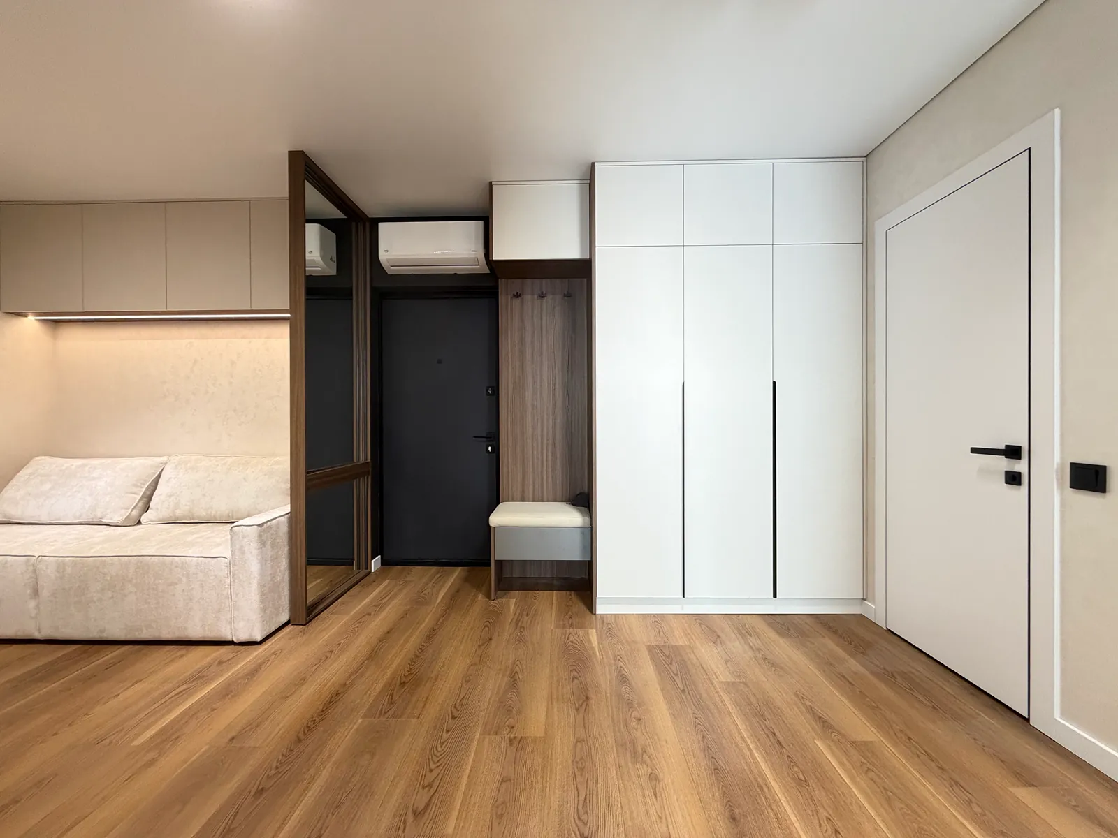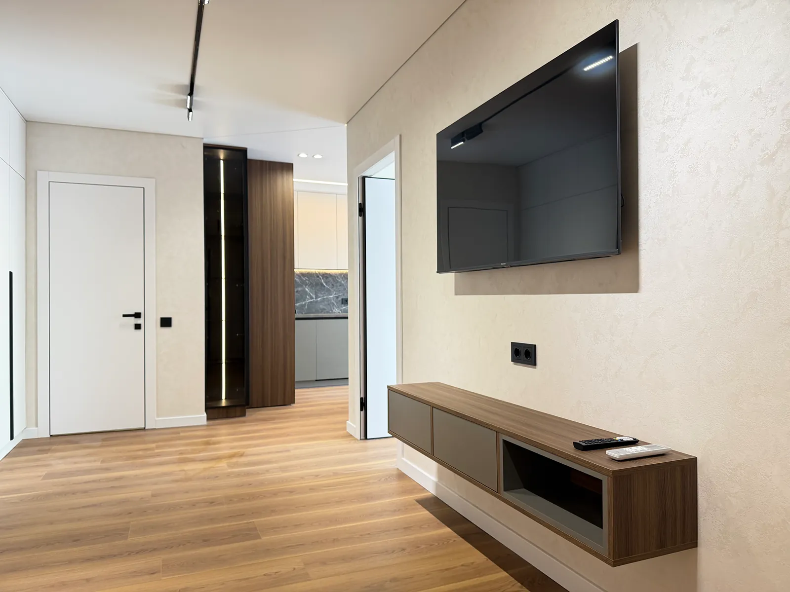 У спальні є ліжко, приліжкові тумби, шафа-купе, бʼюті зона та місце під телевізор. Друга кімната вільного призначення, в якій є місце під диван та бʼюті зону.