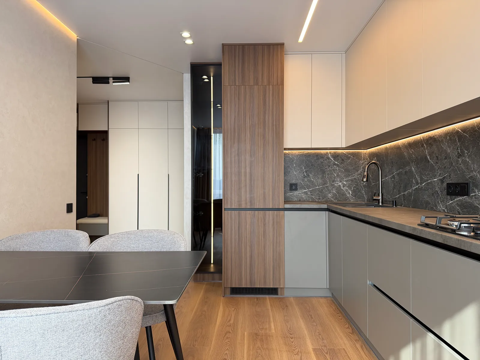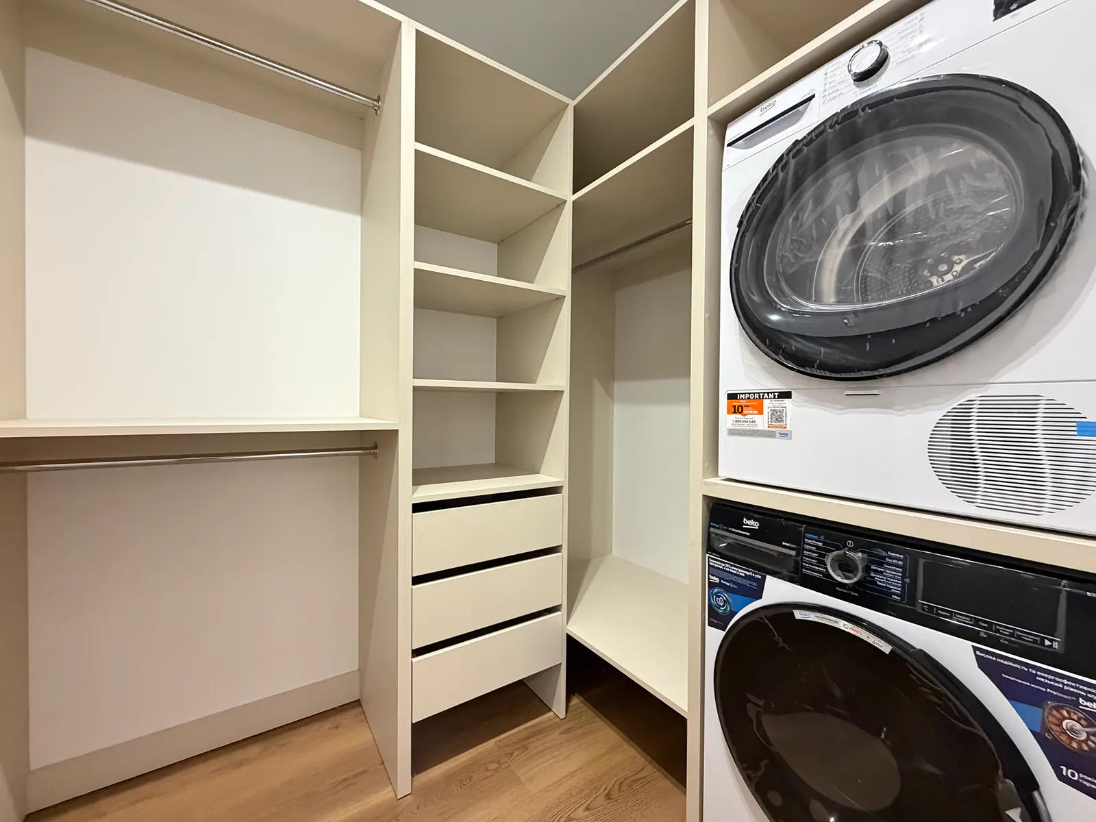Також в квартирі є укомплектований гардероб з пральною та сушильною машинкою.