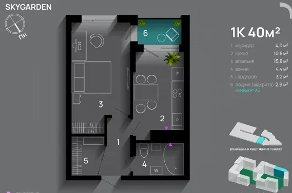 Продається затишна однокімнатна квартира в сучасному житловому комплексі «Skygarden».