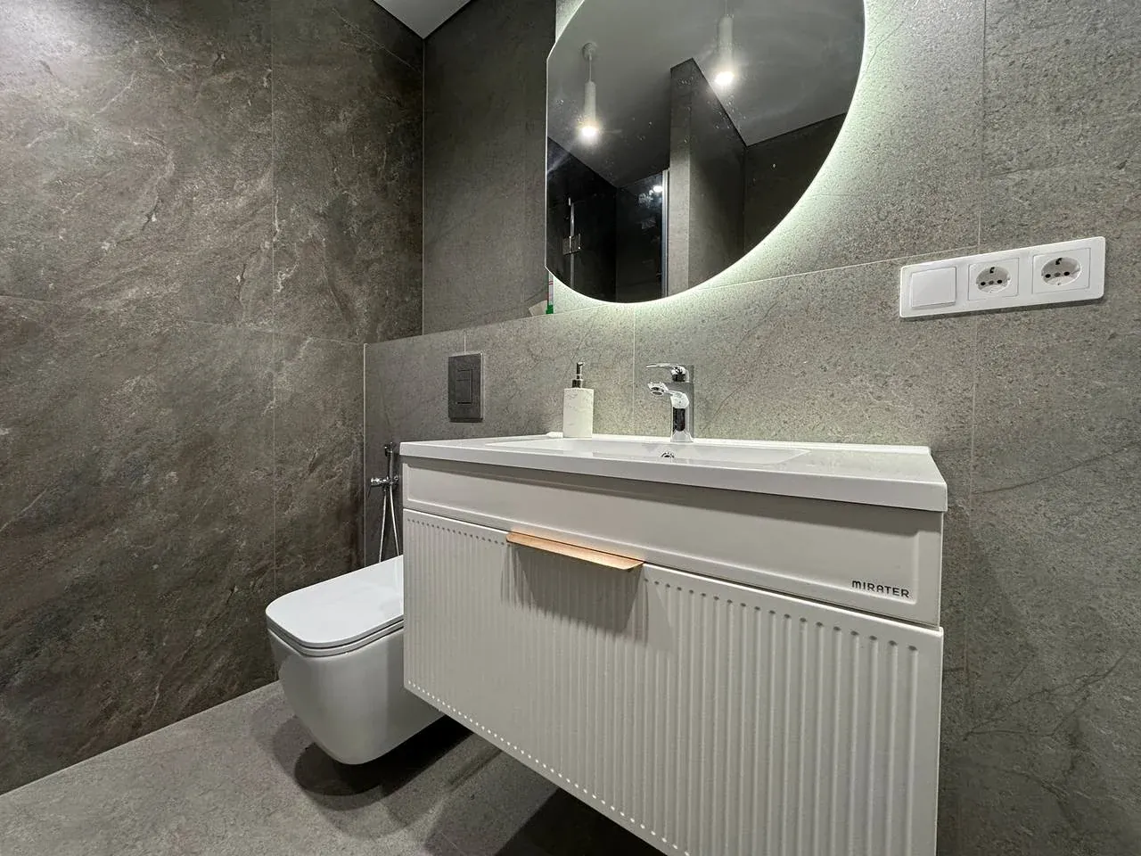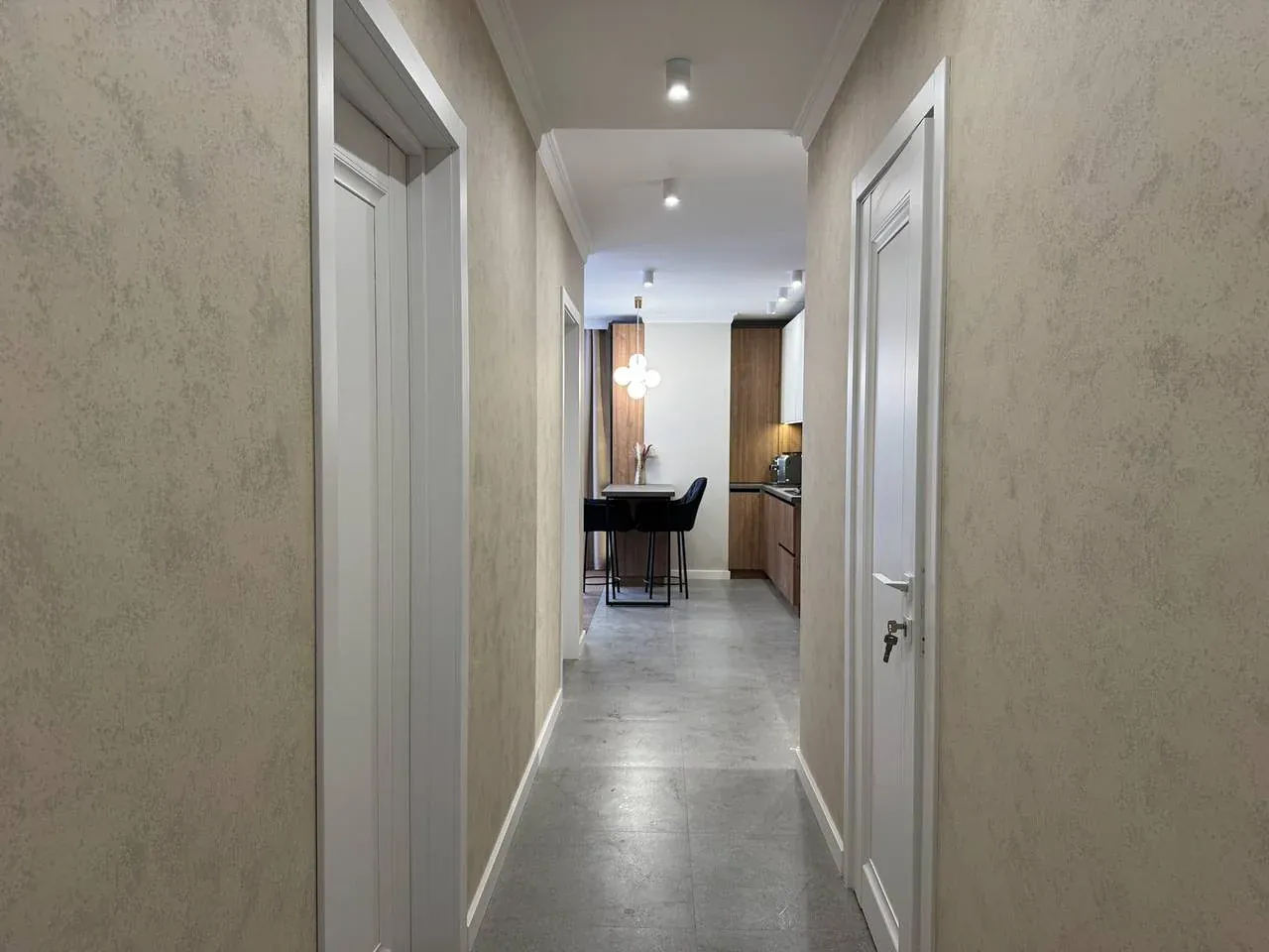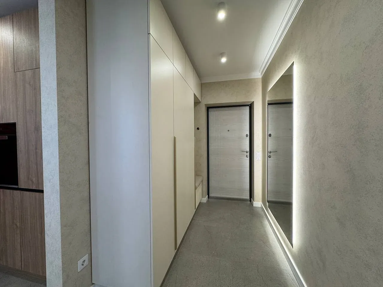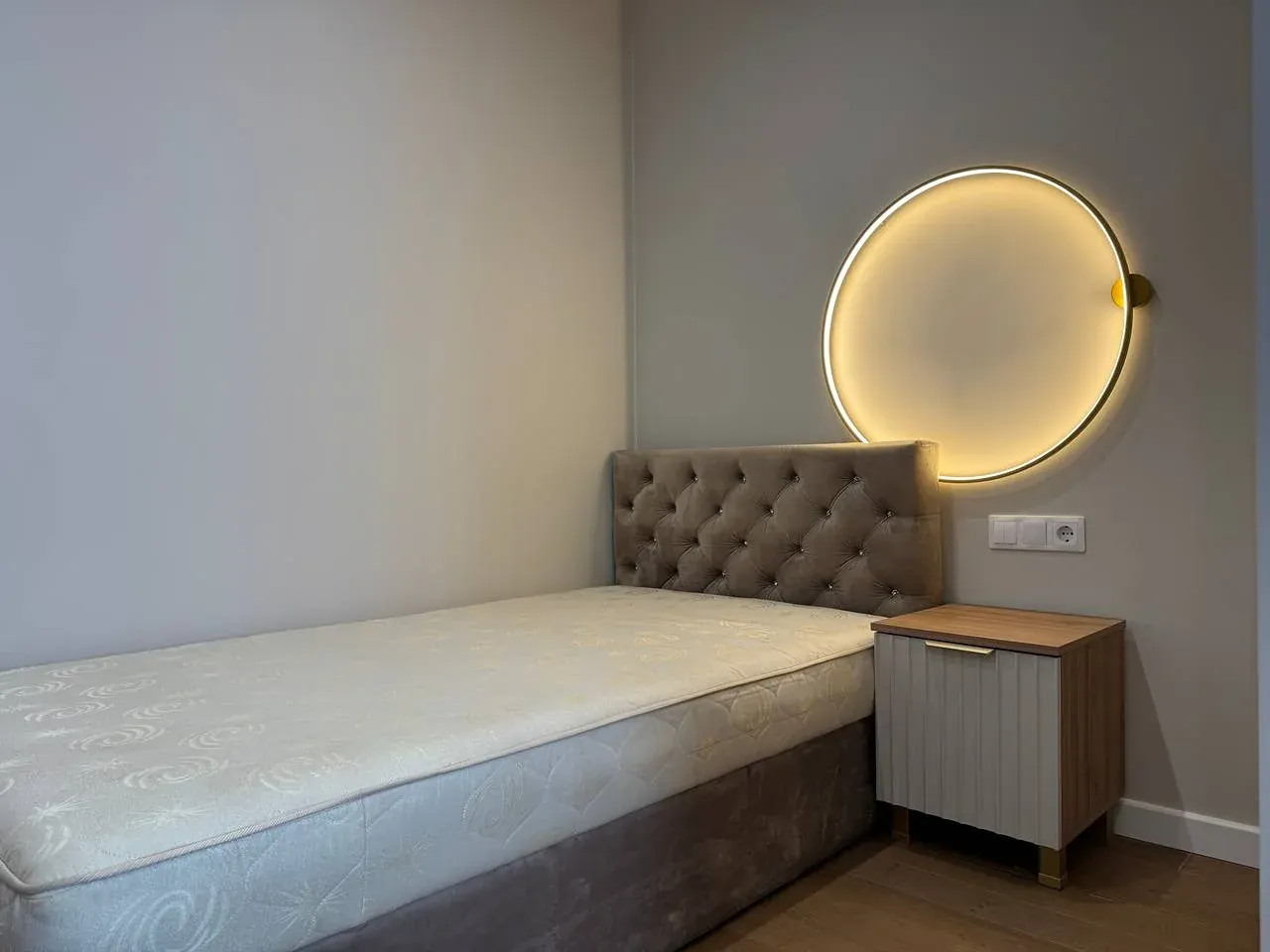 У другій спальні є ліжко, приліжкові тумби, шафа, бʼюті зона.