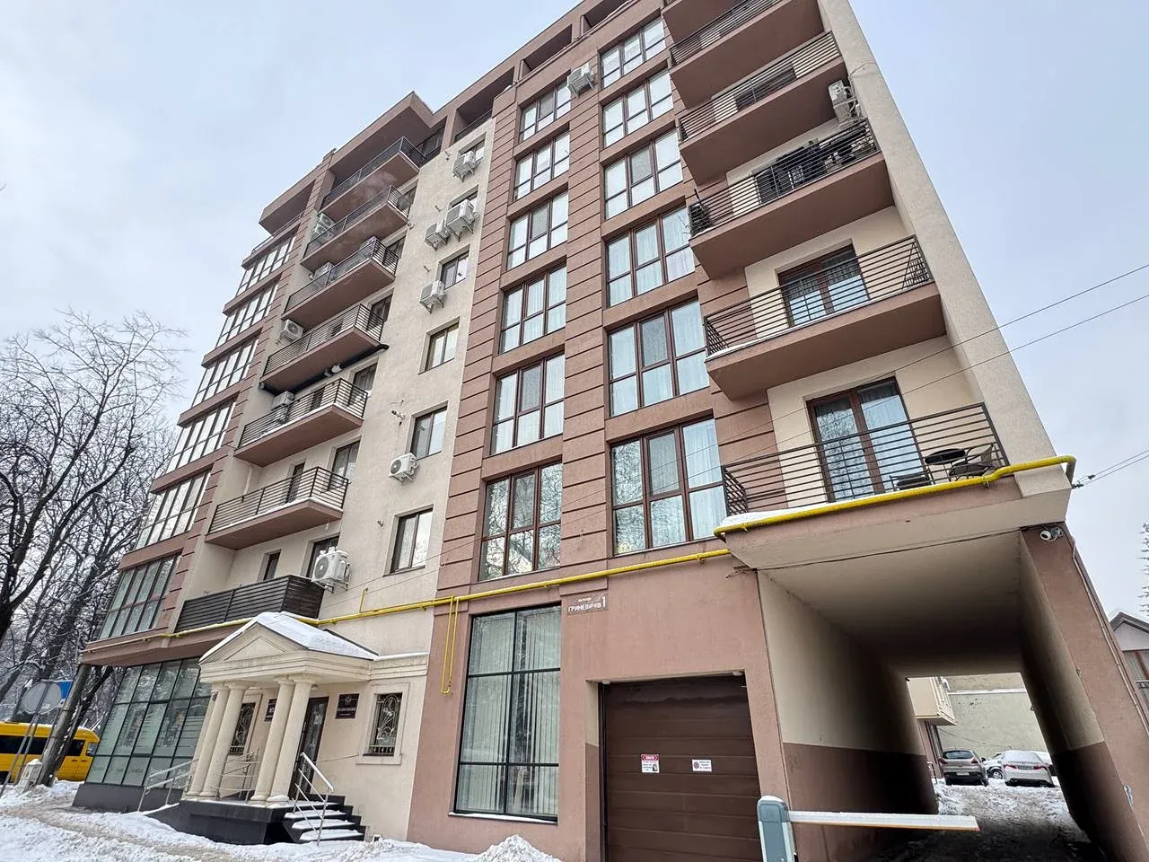 Із зовнішніх сторін дворів знаходяться комерційні приміщення - це кавʼярня, продуктові магазини, аптека та ще багато іншого.