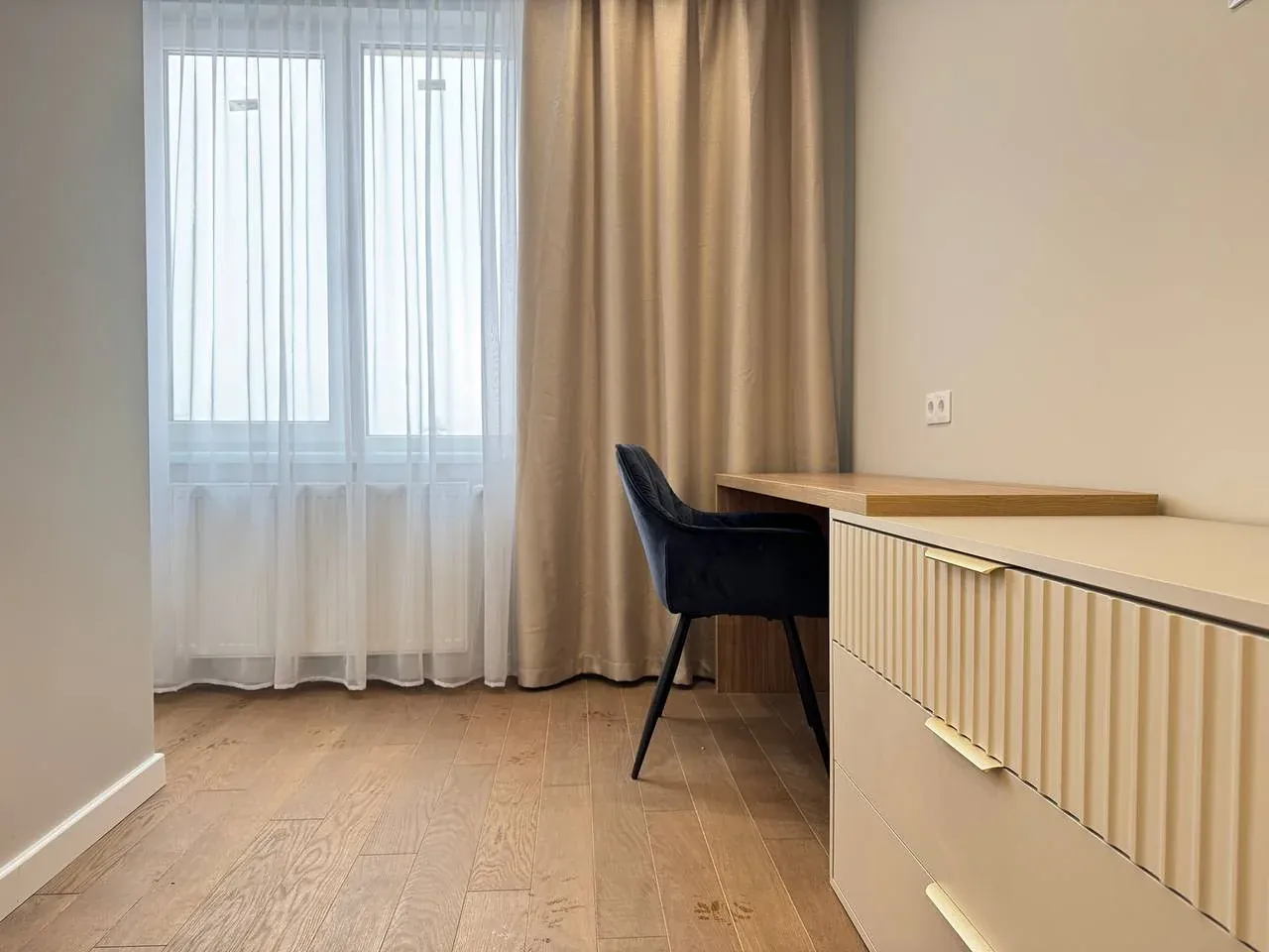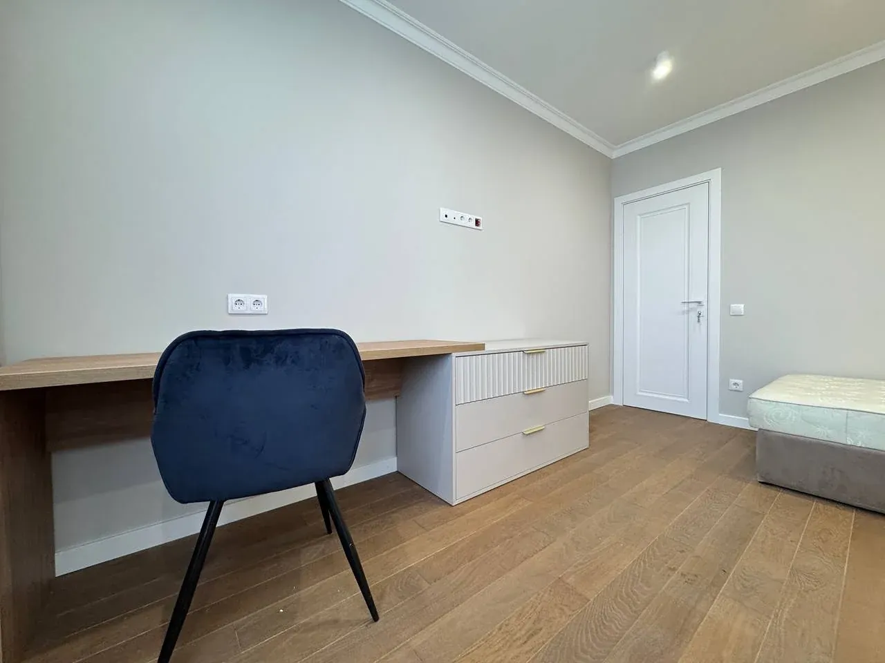 У третій кімнаті також є ліжко, бʼюті зона, шафа і робоча зона
