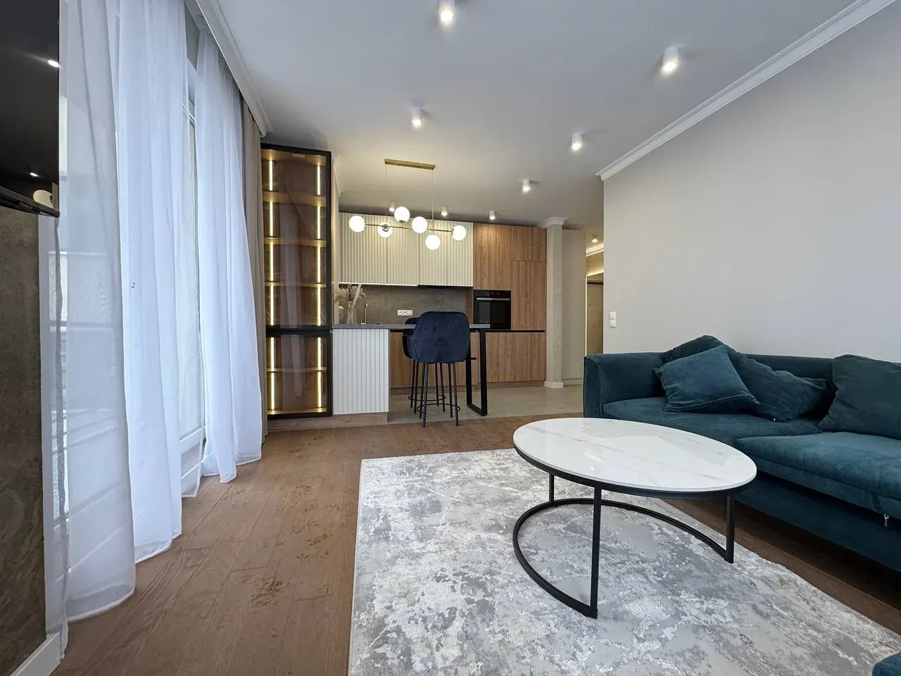 Продається простора квартира з кухнею-студією та трьома окремими кімнатами у сучасному житловому комплексі, в центрі.
