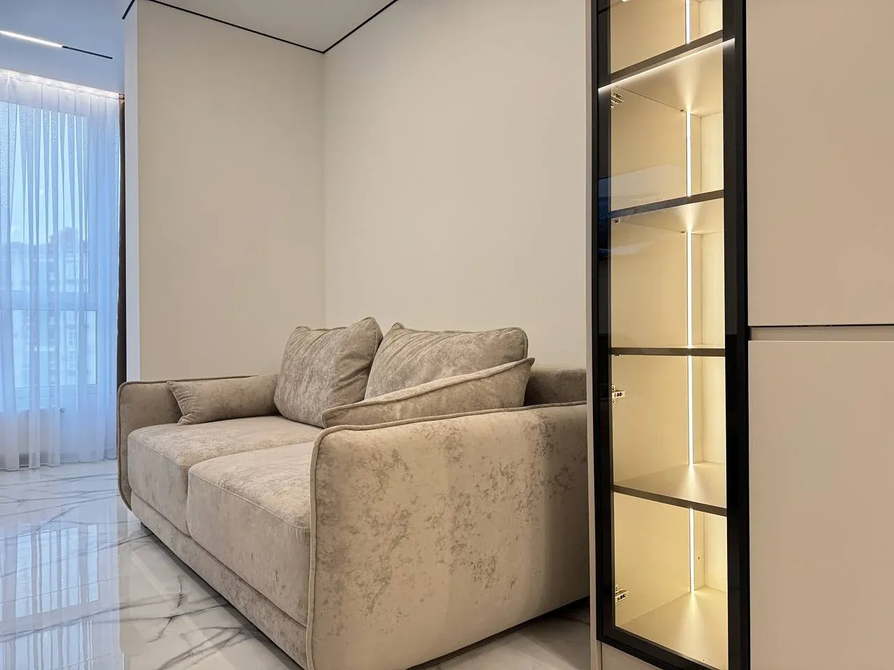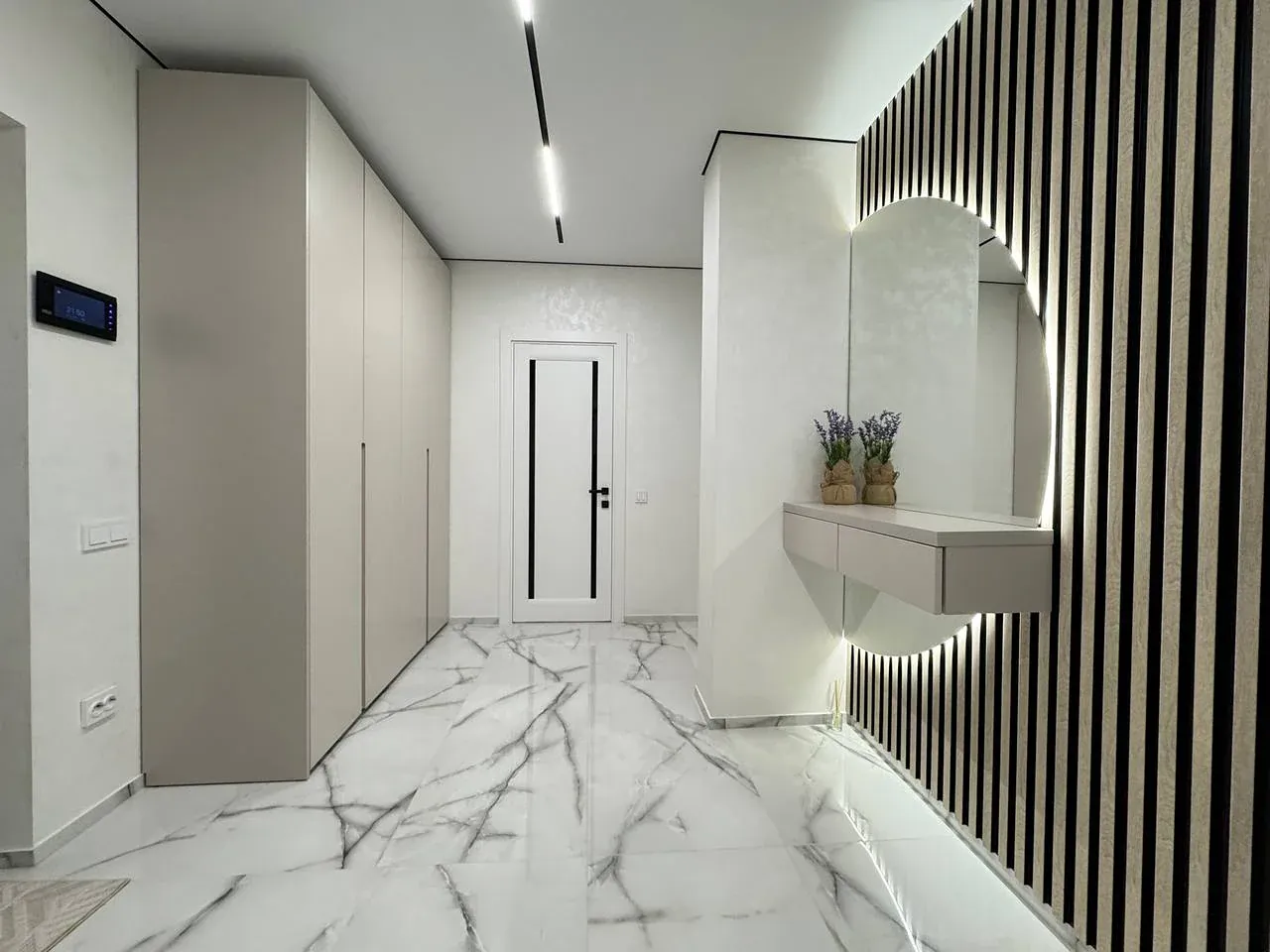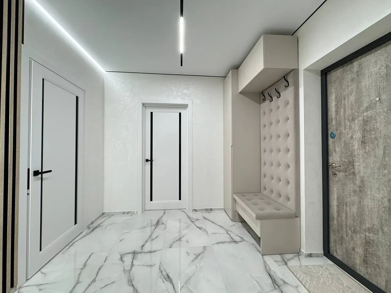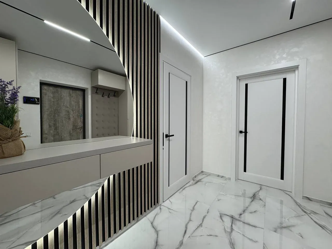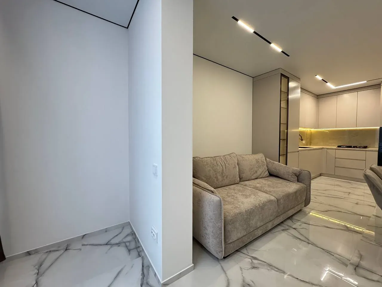 Виконано якісний та дороговартісний ремонт, на стінах декоративна штукатурка, контурна підсвітка кімнат, на підлозі широкоформатна плитка та ламінат.