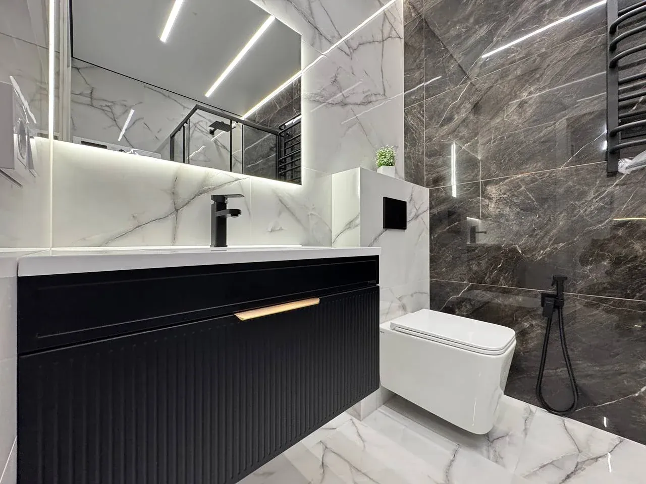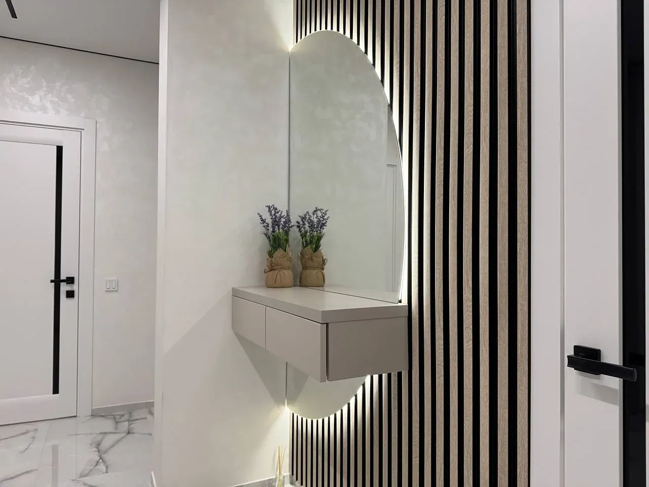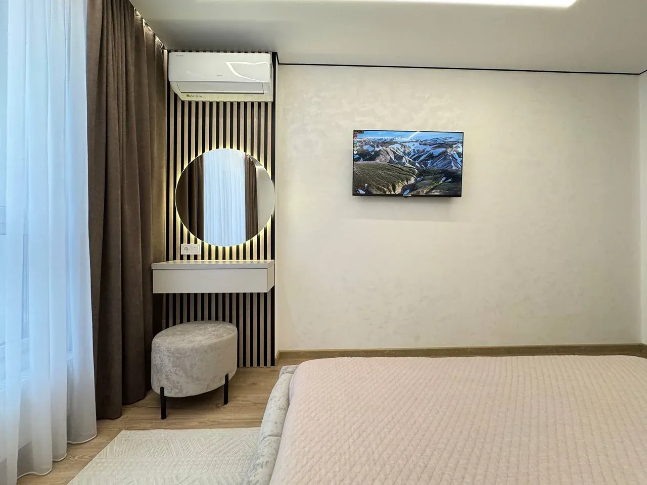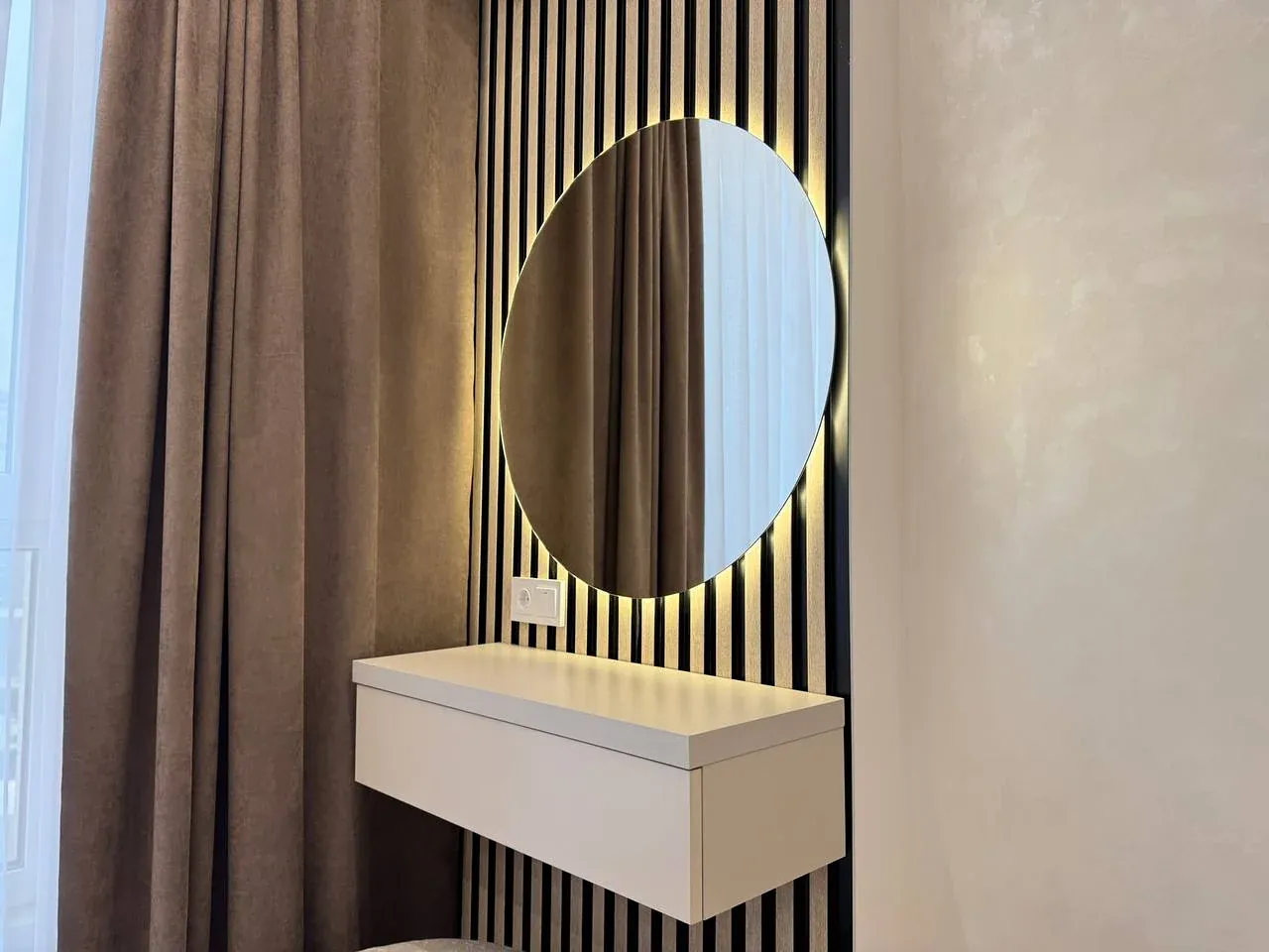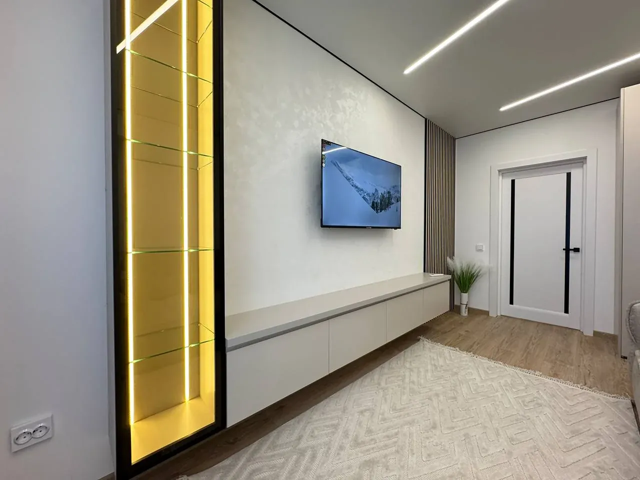 Виконано якісний та дороговартісний ремонт, на стінах декоративна штукатурка, контурна підсвітка кімнат, на підлозі широкоформатна плитка та ламінат.
