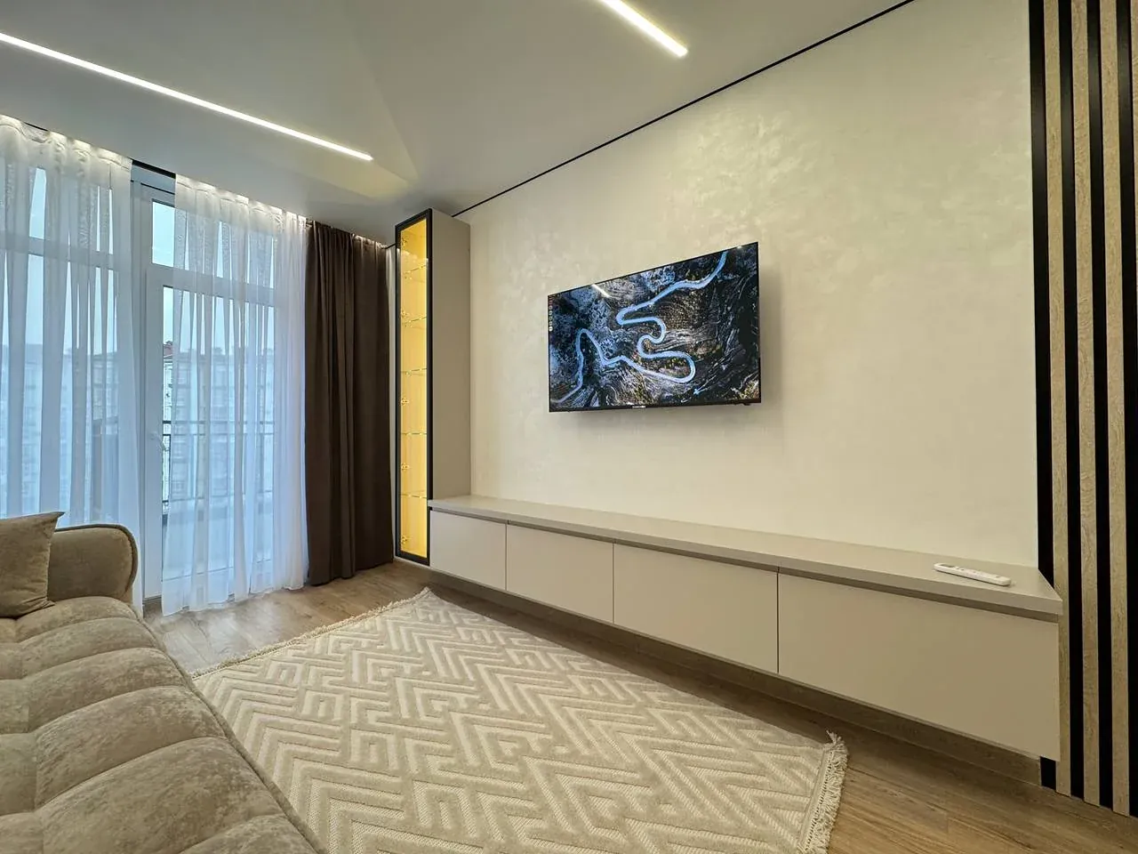 Квартира укомплектована якісними та дорогими меблями та технікою: