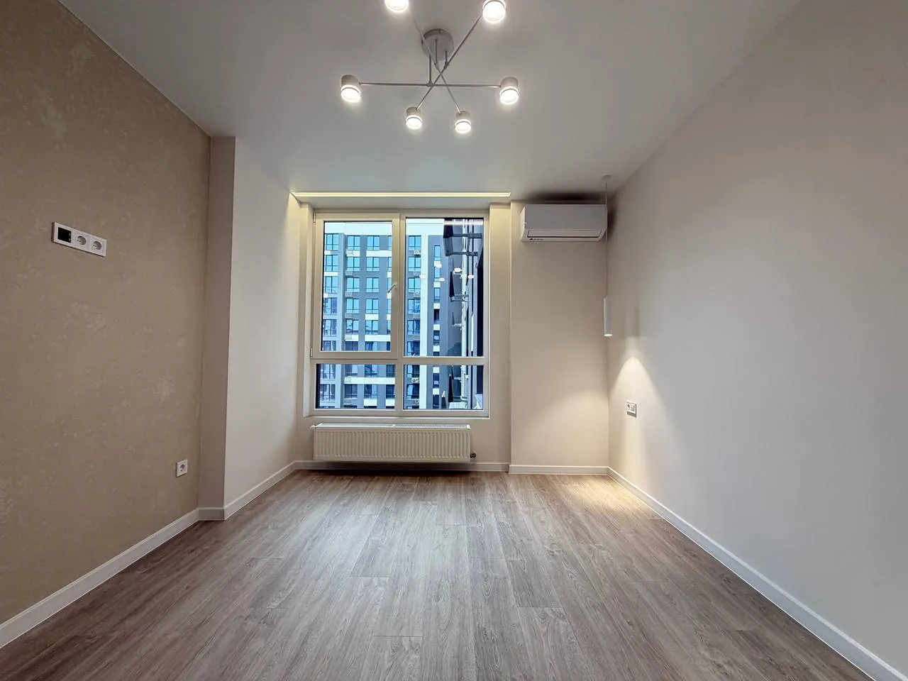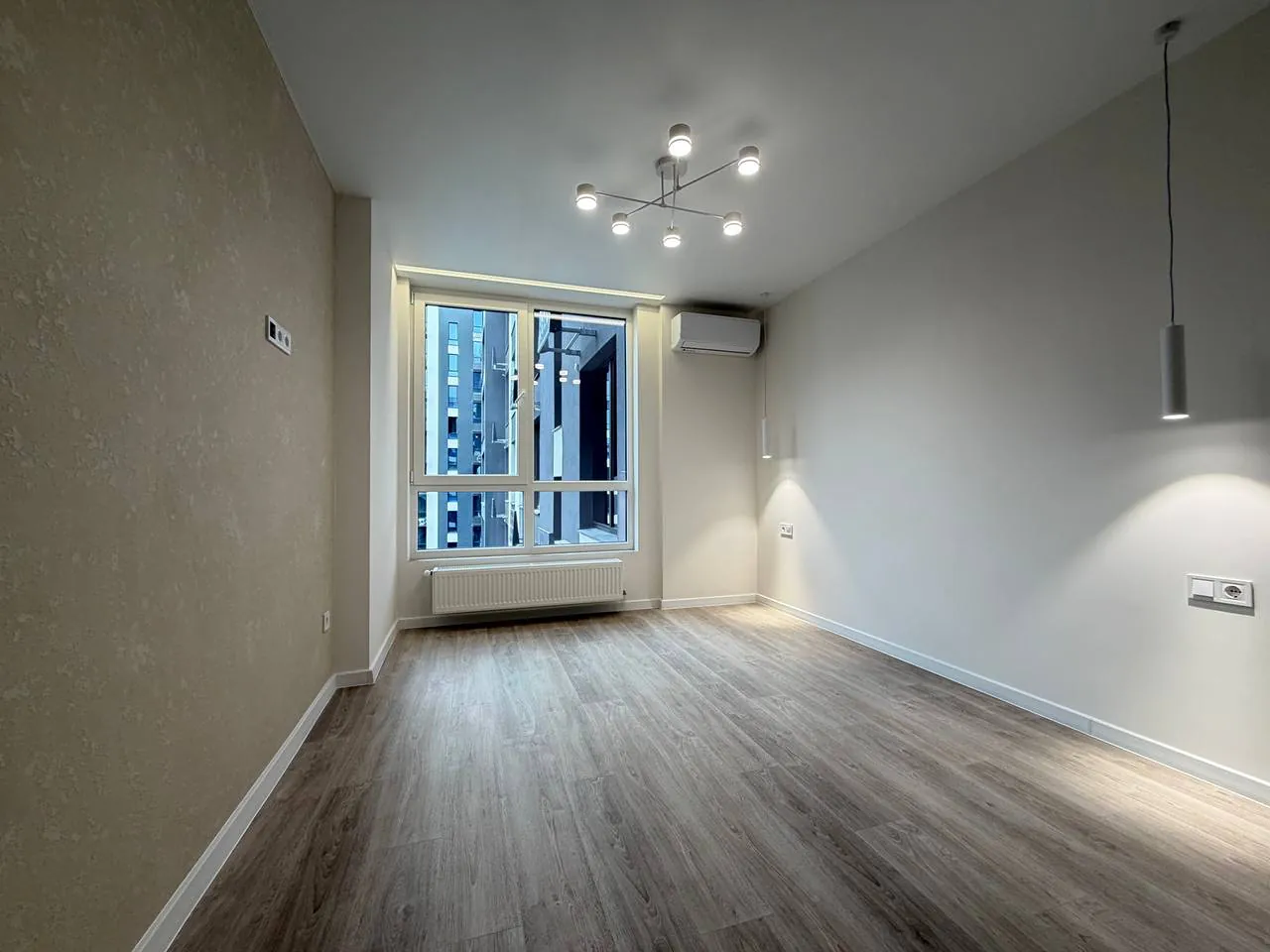 Квартира розташована на зручному восьмому поверсі з тринадцяти, та має загальну площу 64м2. Встановлений підігрів підлоги всюди крім спалень, та є кондиціонер який працює на обігрів та охолодження. На стінах декоративна штукатурка та дорого миюча фарба.