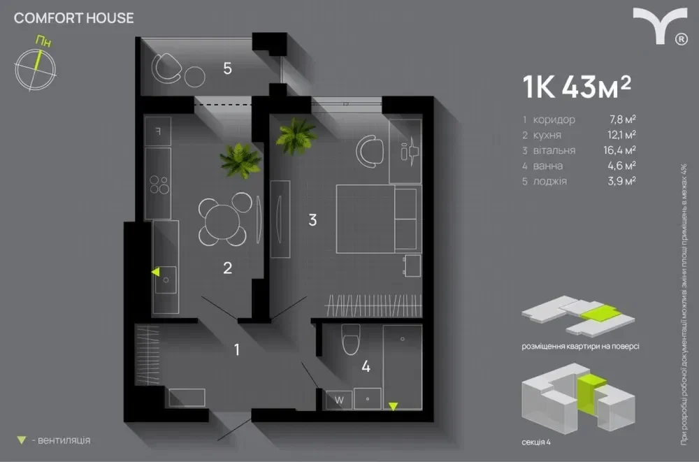 Продається квартира у збудованій секції житлового комплексу «Comfort House».