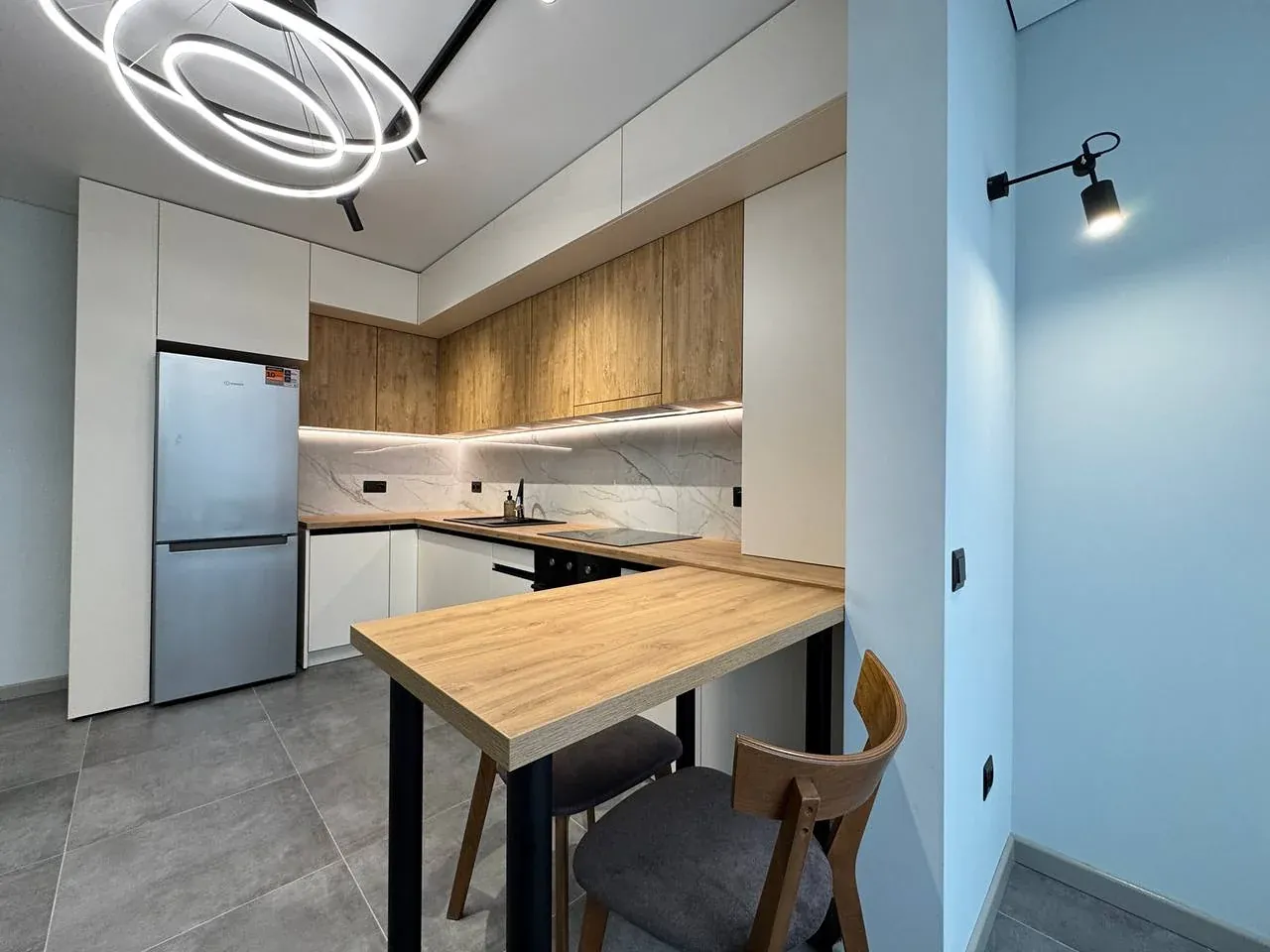 Квартира повністю укомплектована меблями та технікою:
