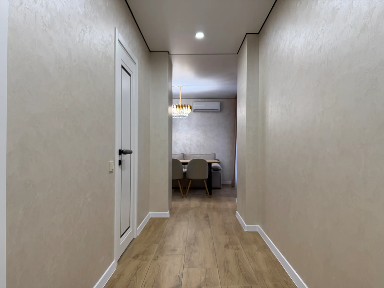 Квартира розташована на зручному третьому поверсі з тринадцяти, та має загальну площу 65м2. Встановлений підігрів підлоги всюди крім спалень, та є кондиціонер який працює на обігрів та охолодження. На стінах декоративна штукатурка та дорого миюча фарба.