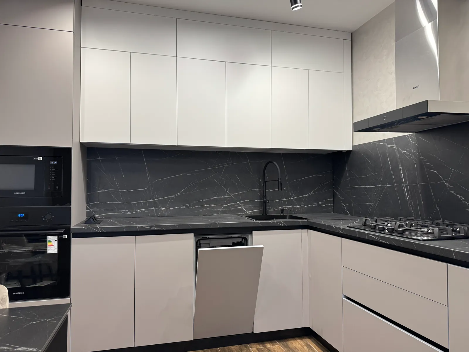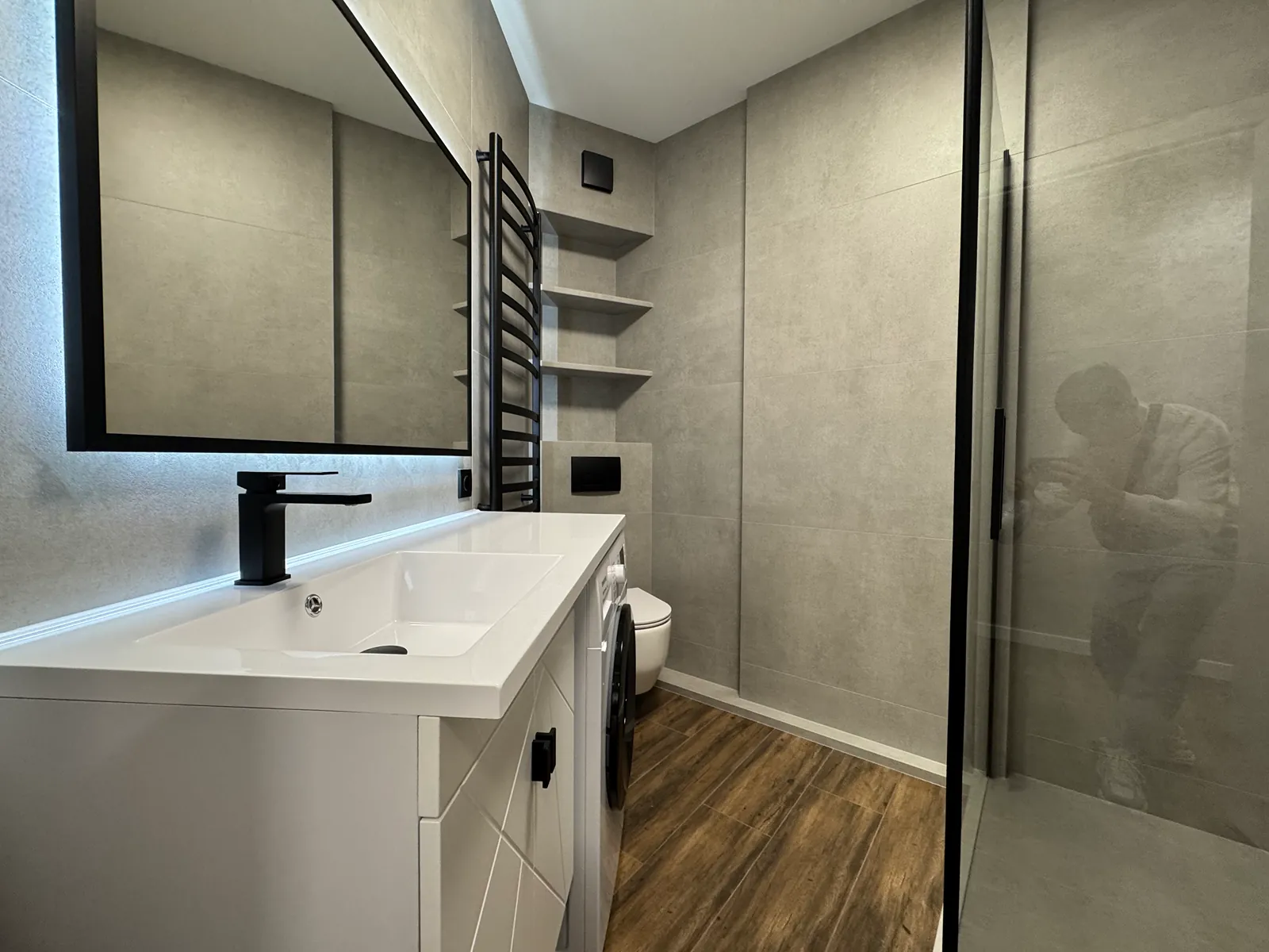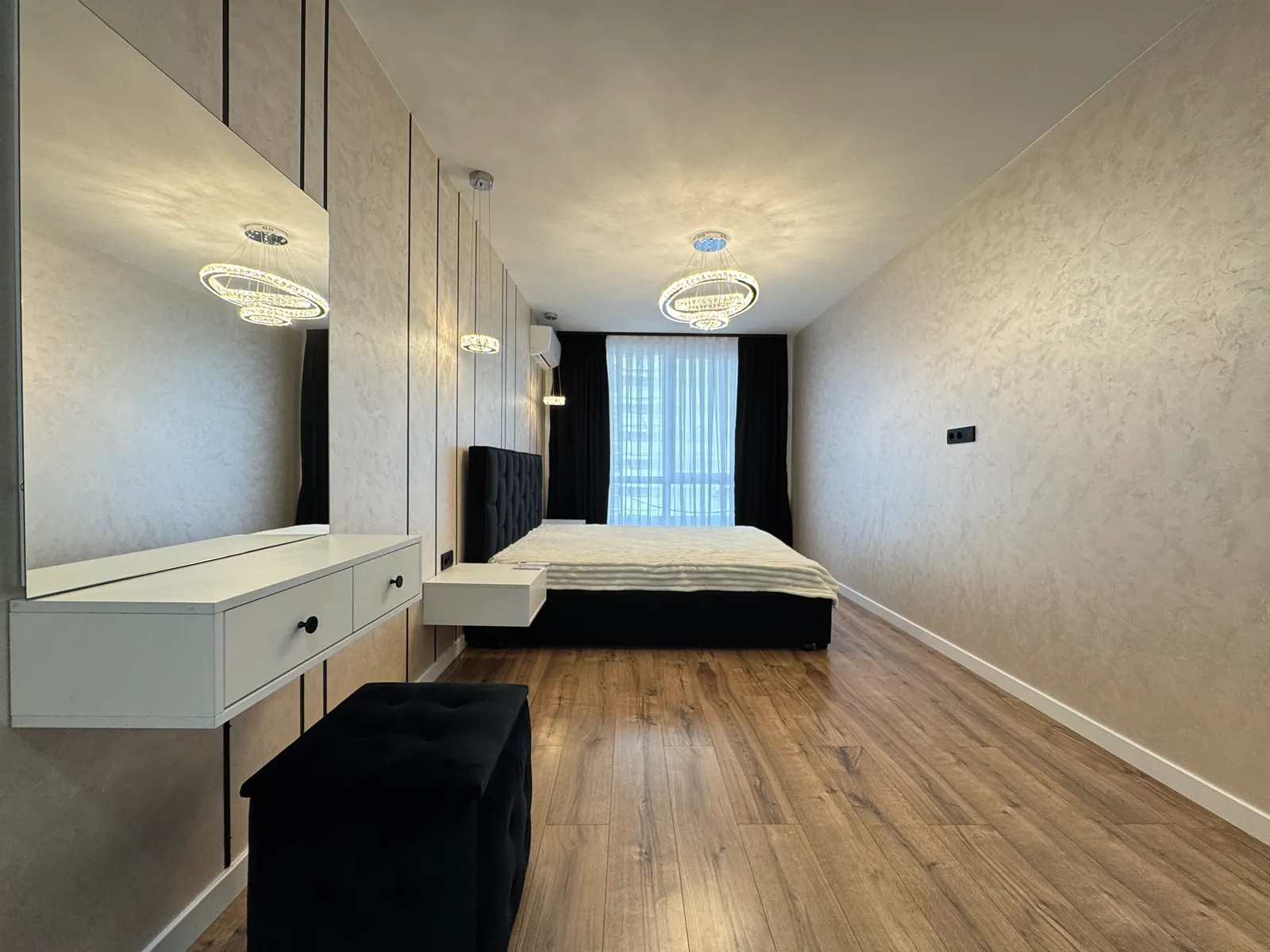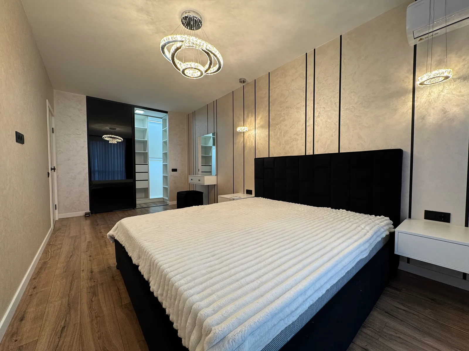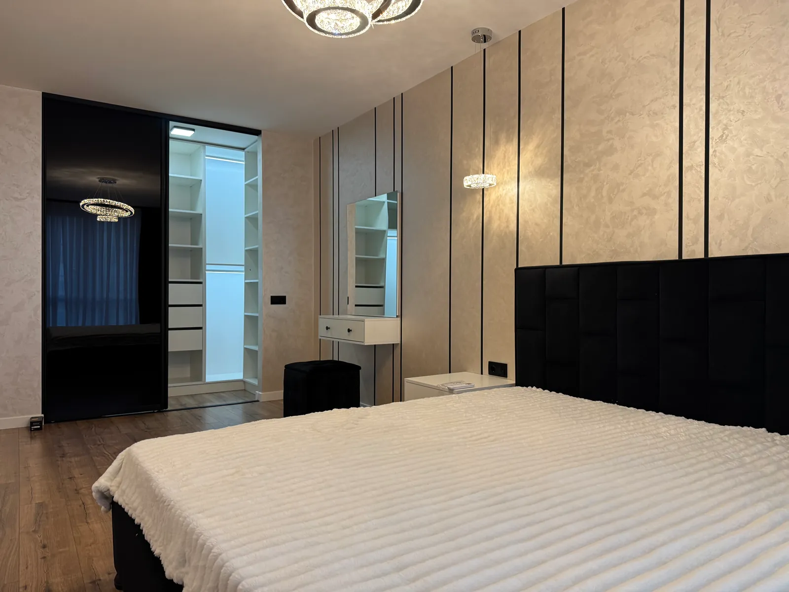 Також квартира повністю укомплектована всією необхідною технікою та меблями. На кухні присутня така техніка: холодильник, духова шафа, посудомийна машина, варильна поверхня, витяжка та мікрохвильова піч. Для комфотру є диван, обідній стіл з стільцями та телевізор. Встановлений підігрів підлоги по всій квартирі, окрім спальні та дитячої кімнати. У спальній є велике двоспальне ліжко, телевізор, шафа купе та кондиціонер який працює на обігрів та охолодження. Також є дитяча кімната в якій є диван та телевізор. В санвузлі встановлена душева квабіна з тропічним душем, інсталяція, велике дзеркало з підсвіткою, рушникосушка та пральна машина. В коридорі є шафа для верхнього одягу та велике дзеркало з підсвіткою.