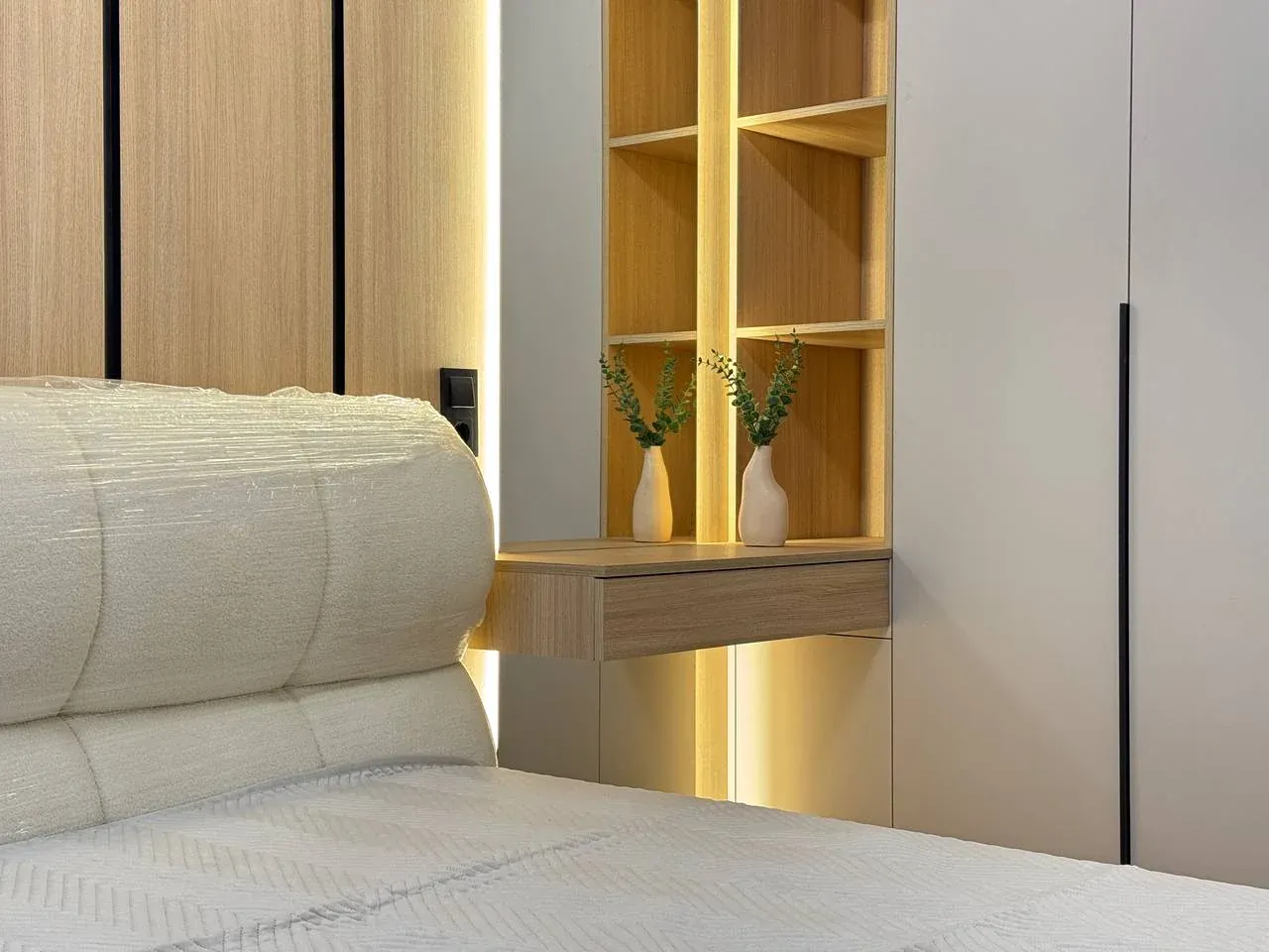 - спальня кімната з ліжком та бюті зоною