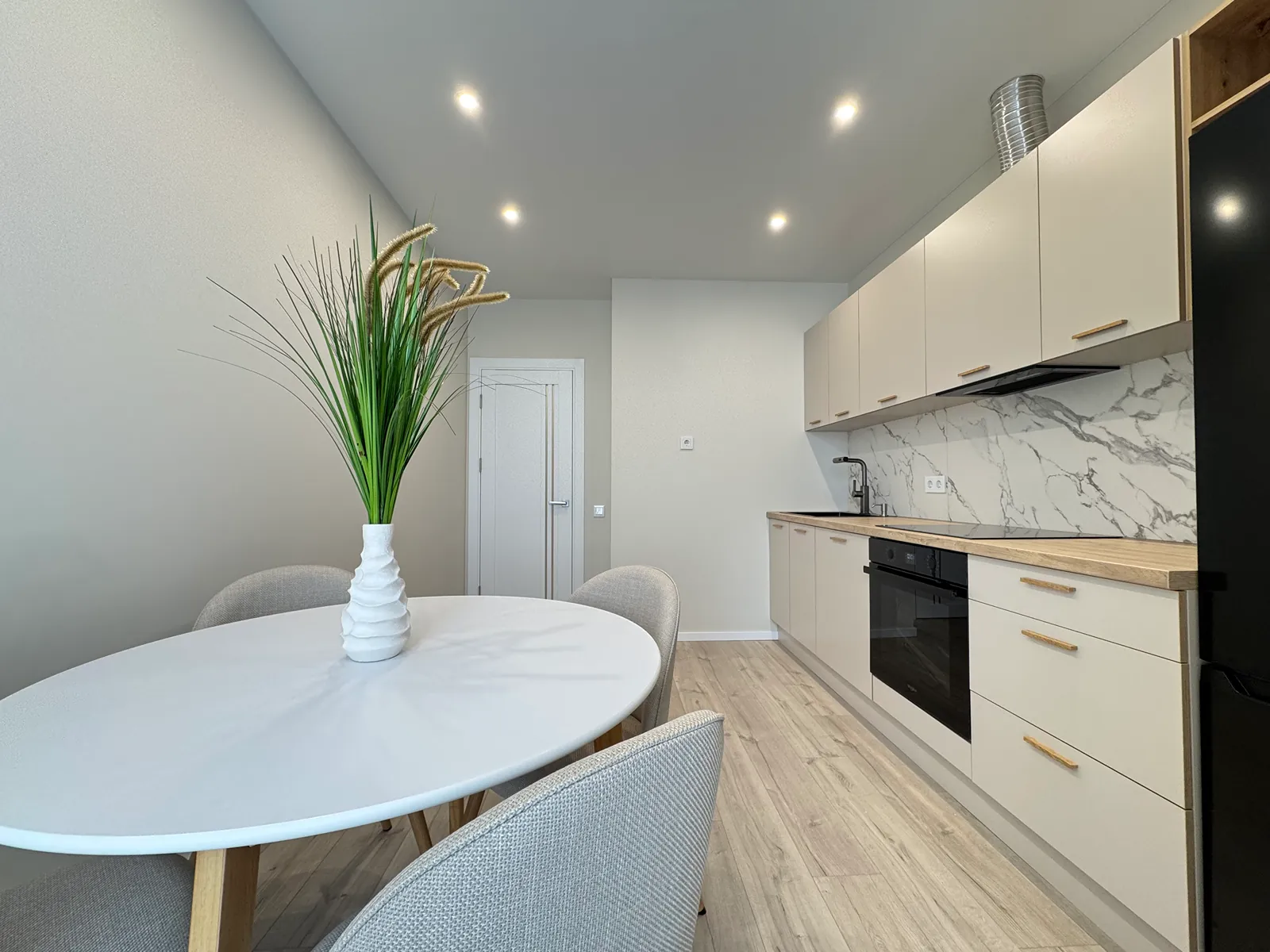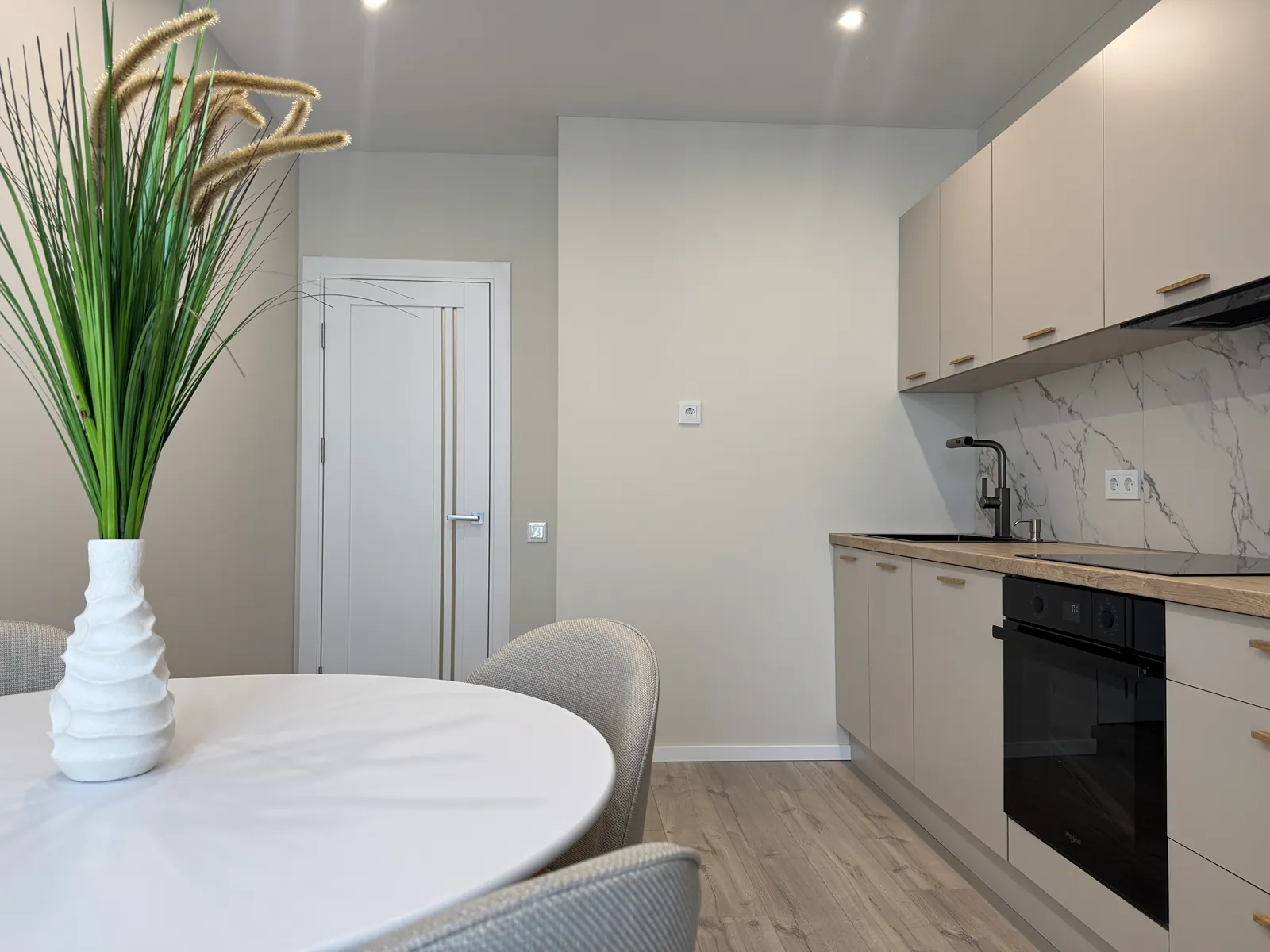 В квартирі виконаний сучасний ремонт та встановлені меблі та техніка. Квартира має загальну площу 39.3м2, що включає в себе: коридор, комфортну кухню, світлу спальню, гардероб та санвузол. Для комфорту в квартирі встановлений підігрів підлоги, також є кондиціонер, який працює на обігрів та охолодження. На кухні встановлені кухонні меблі, обідній стіл з стільцями, з техніки є холодильник, варильна поверхня, духова піч та витяжка. Квартира видова з дуже красивим краєвидом на гори.