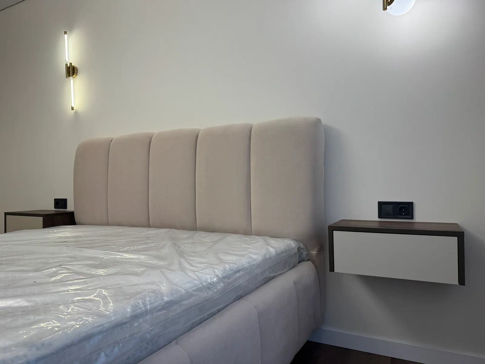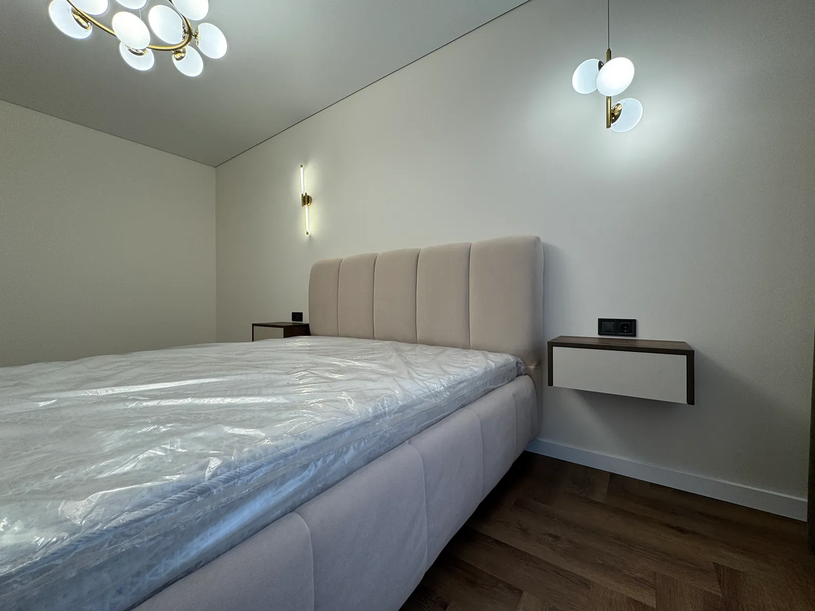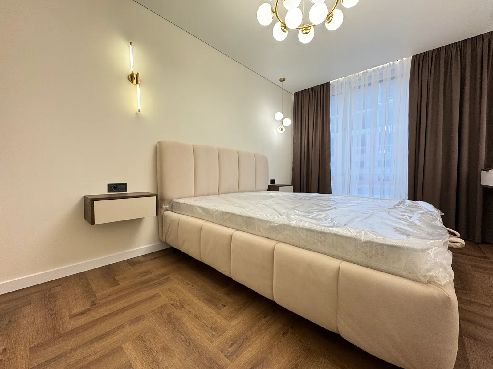 На кухні вмонтована вся необхідна техніка та меблі. В спальні є двоспальне ліжко з підйомним механізмом, приліжкові тумби та місце для телевізора.
