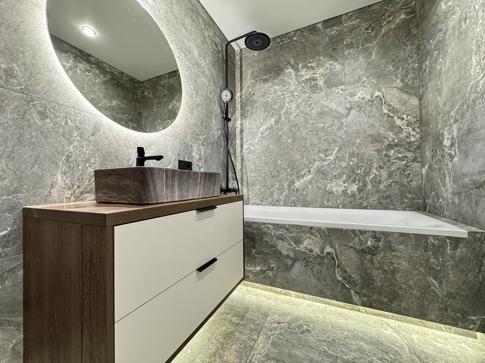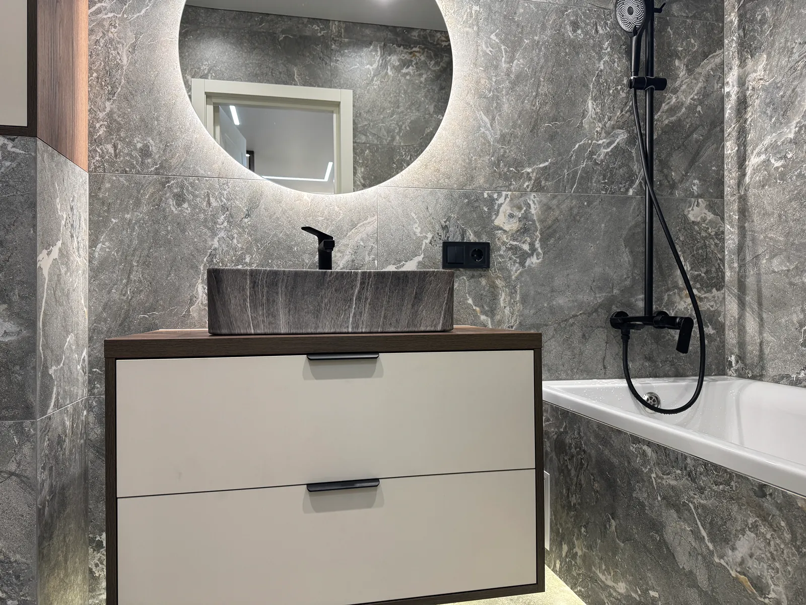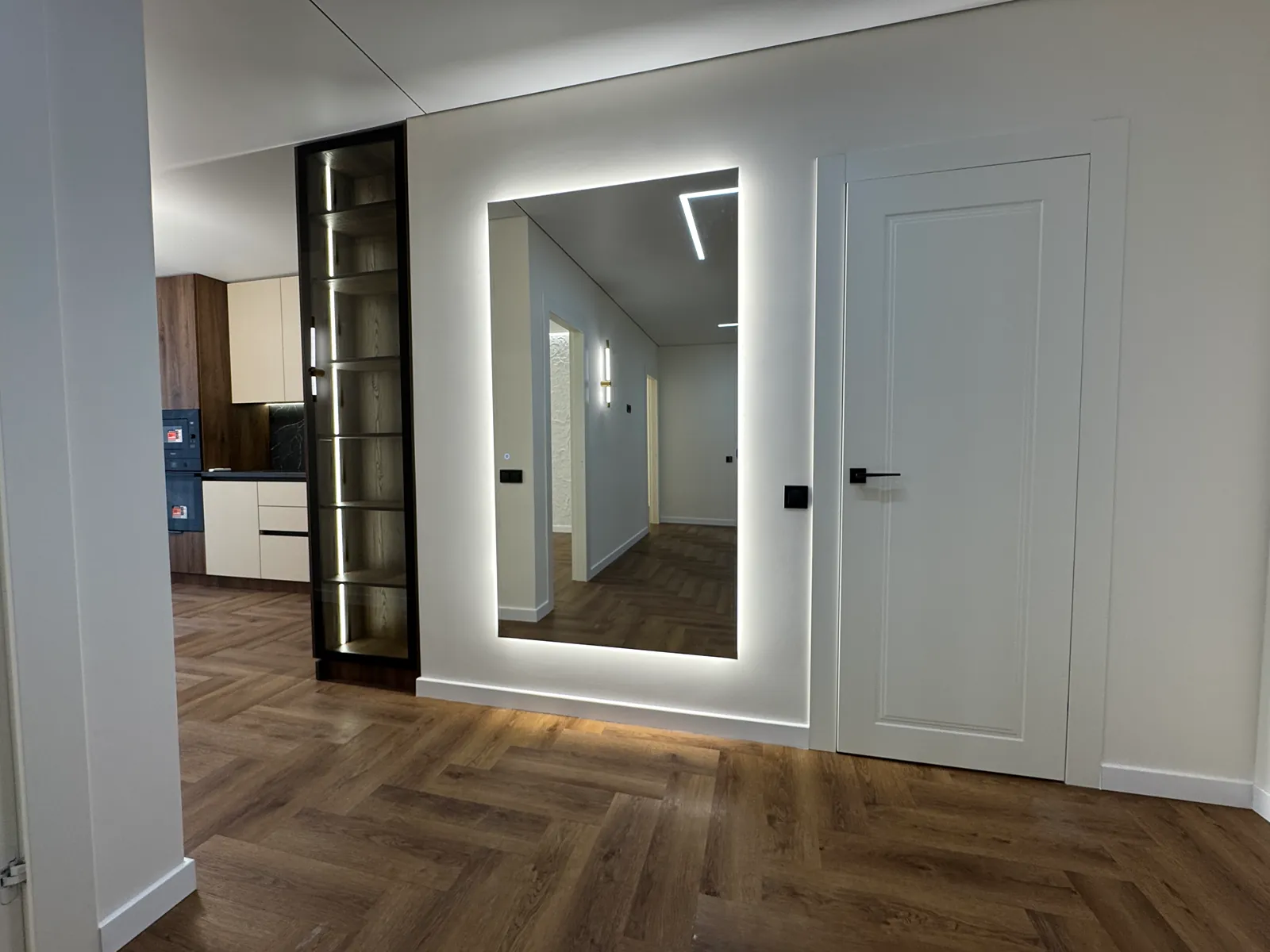 На кухні вмонтована вся необхідна техніка та меблі. В спальні є двоспальне ліжко з підйомним механізмом, приліжкові тумби та місце для телевізора.