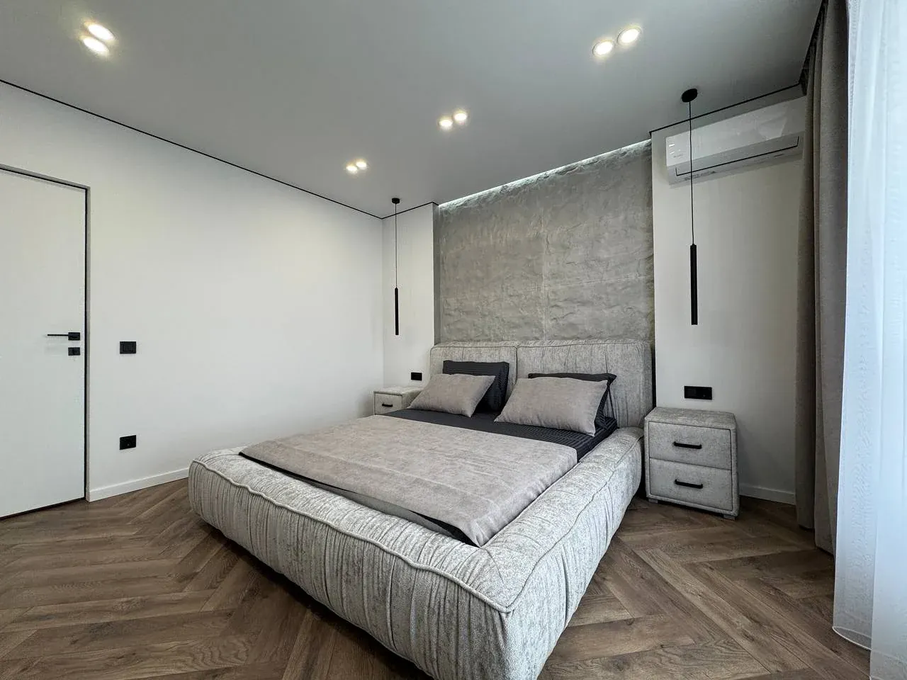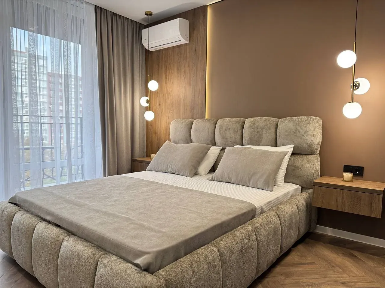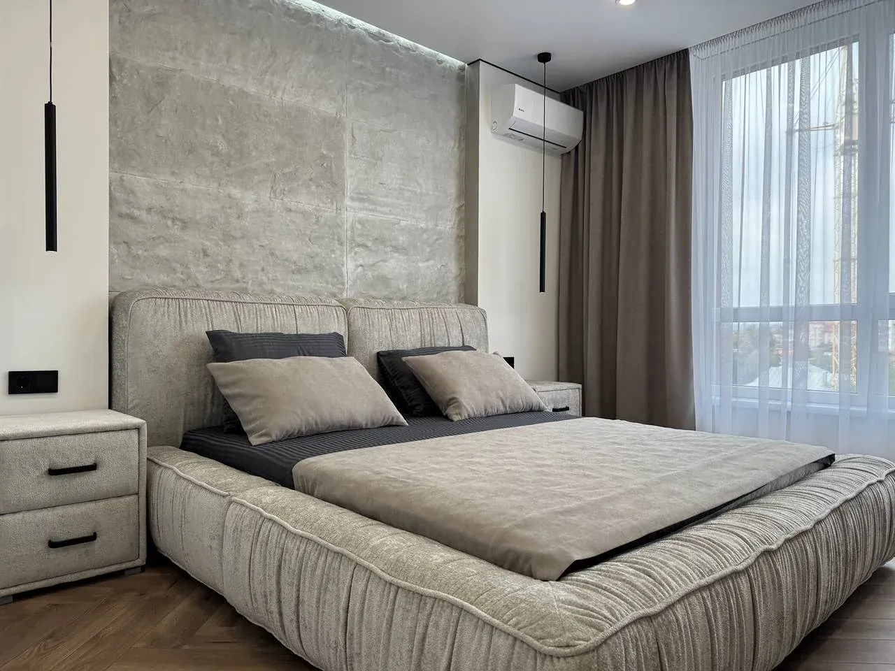 Квартира розташована на зручному шостому поверсі з одинадцяти з функціональним плануванням. Загальна площа квартири 90м2, планування квартири включає в себе просторий коридор, велику кухню-студію, два санвузли, вмістку гардеробну, світлу спальню та батьківську спальню з великим відкритим балконом. Зроблений стильний та якісний ремонт при якому використовувались надійні та перевірені матеріали.