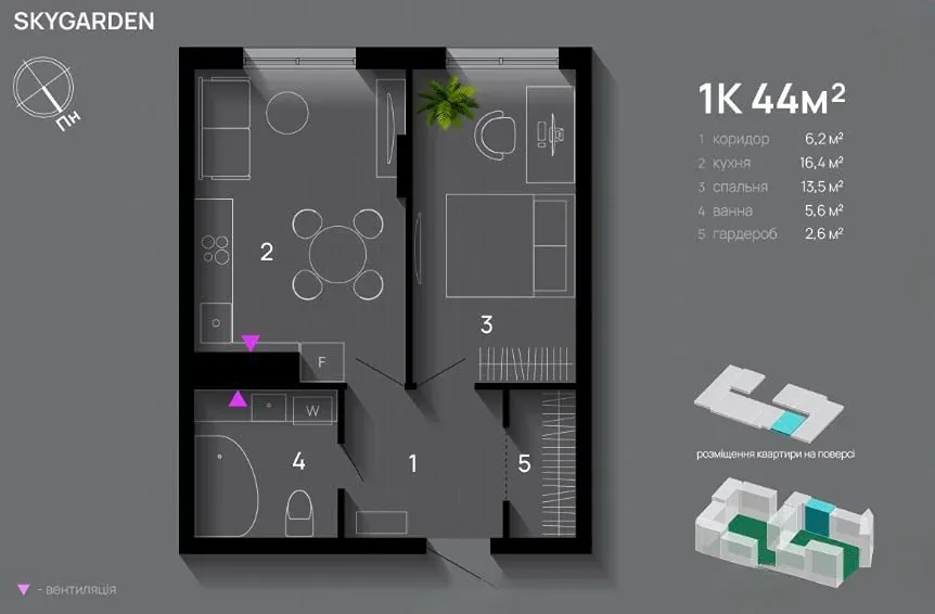 Продається однокімнатна квартира в сучасному житловому комплексі «Skygarden».