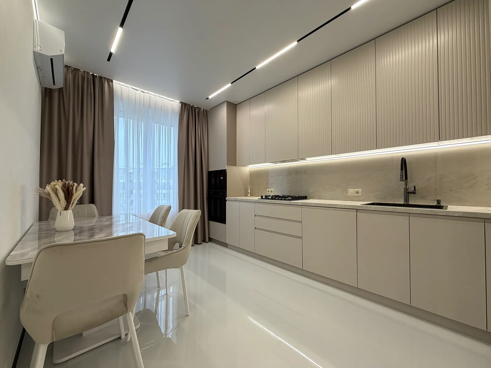 Продається дизайнерська трикімнатна квартира з кухнею та трьома окремими кімнатами в сучасному житловому комплексі, поблизу міського озера та парку Шевченка.