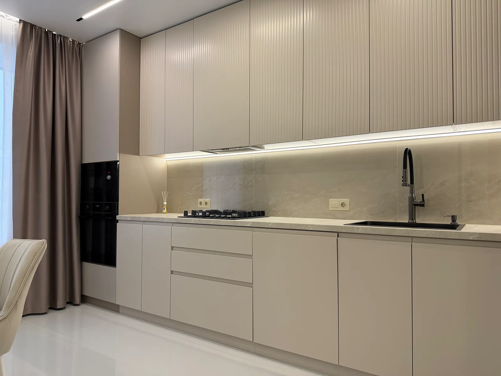 Квартира укомплектована всіма необхідними меблями та технікою: