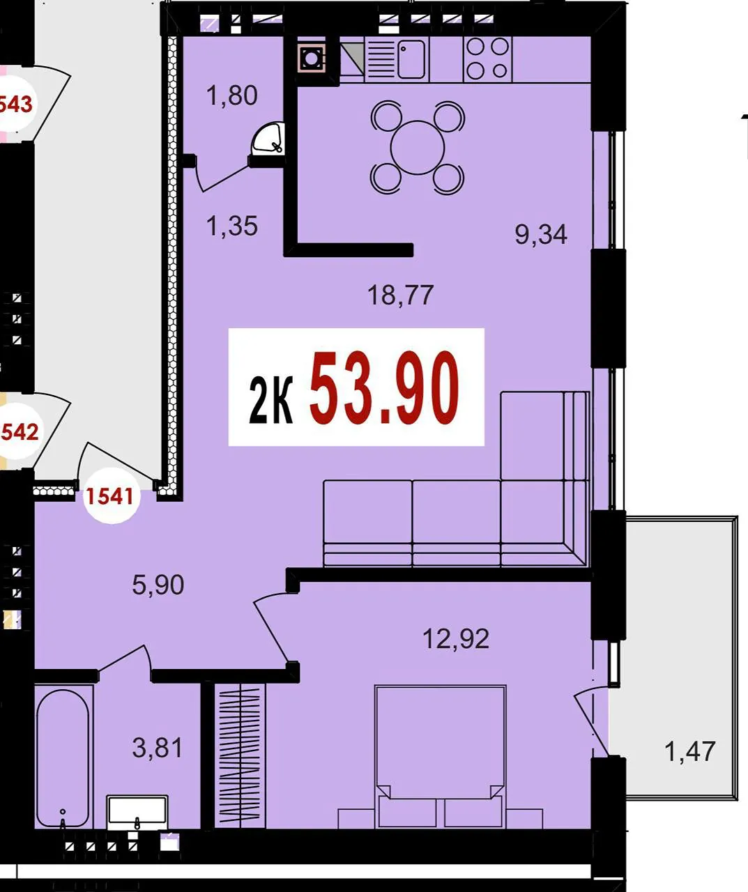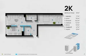 Двокімнатна з балконом та терасою у ЖК Долішній