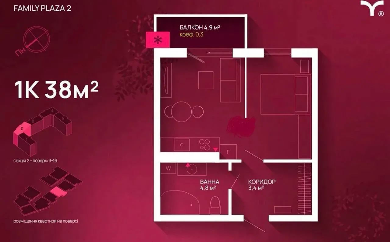 Однокімнатна з балконом в ЖК Family Plaza 2