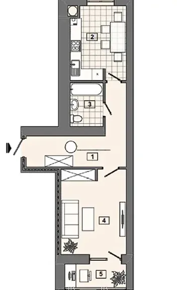 Сучасна однокімнатна з кухнею-студією