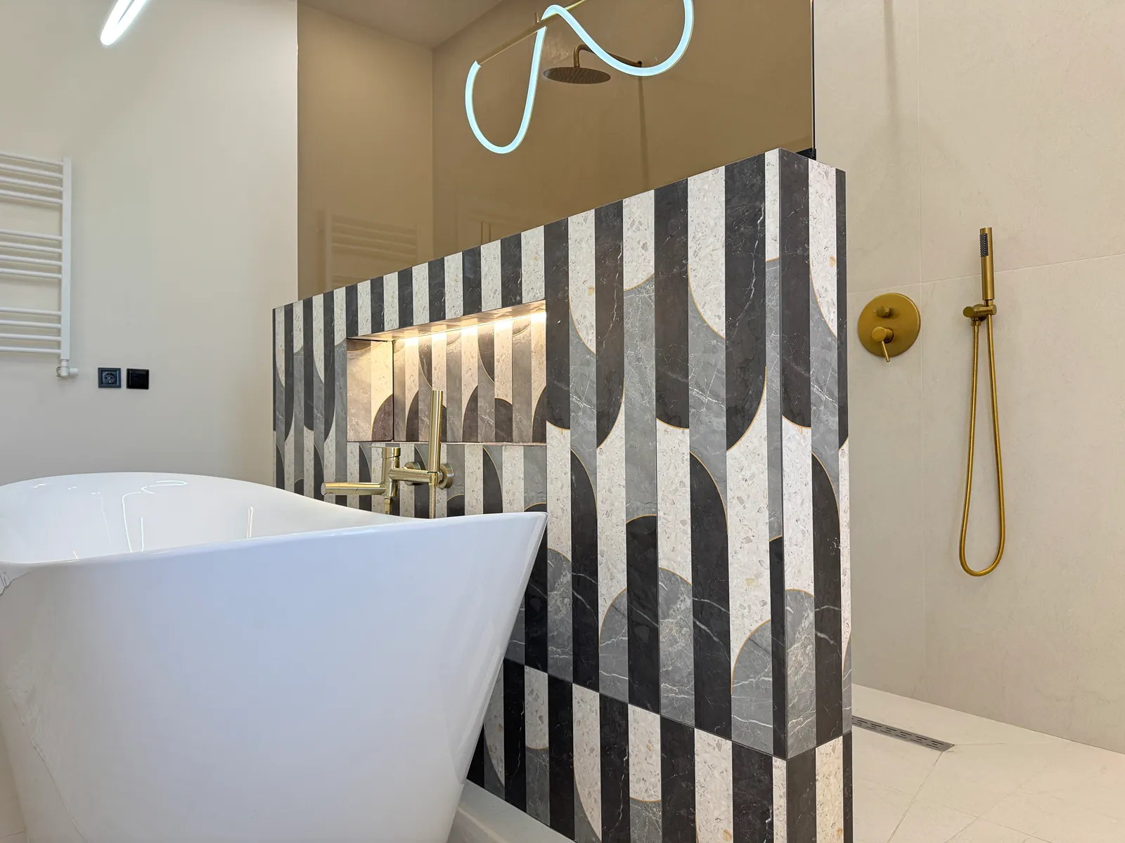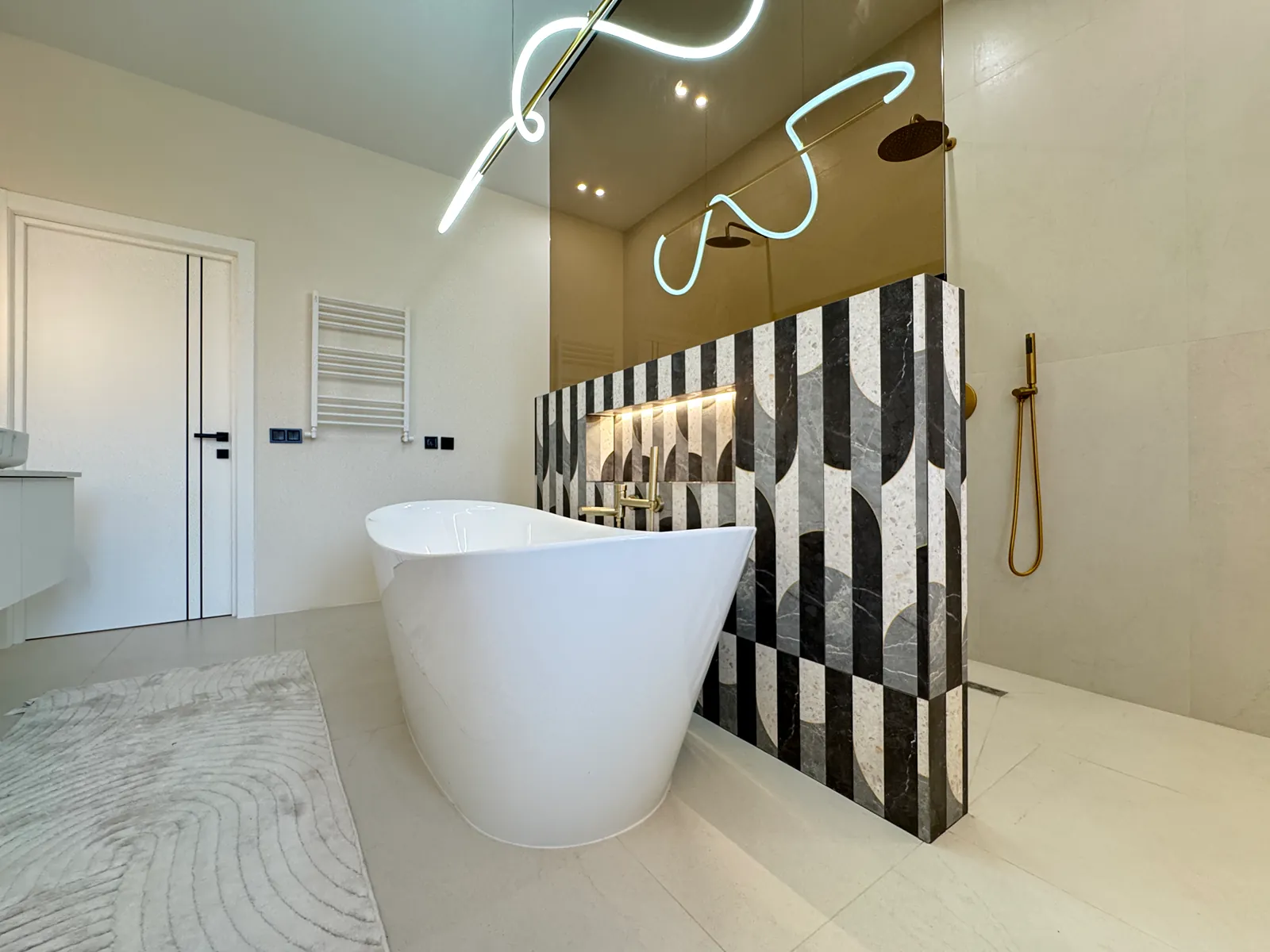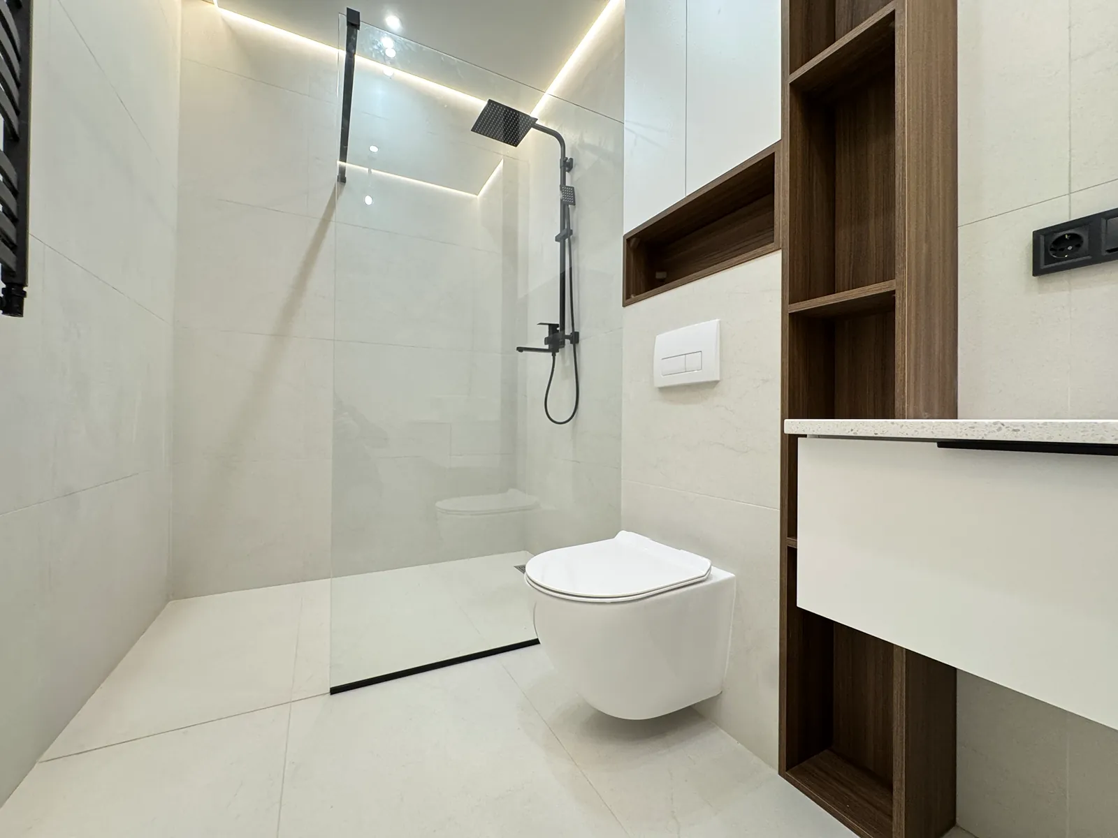 В помешканні щойно завершився дизайнерський ремонт. Всі матеріали та наповнення ретельно підбирались, щоб забезпечити якість та комфорт проживання на довгі роки. Сучасне, красиве освітлення, якісна сантехніка та техніка, дороге омеблювання приємно вас здивує.
